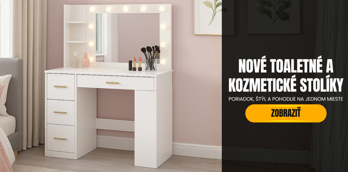 Aga Toaletný stolík so zrkadlom, osvetlením a el.zástrčkou + stolička Matný biely