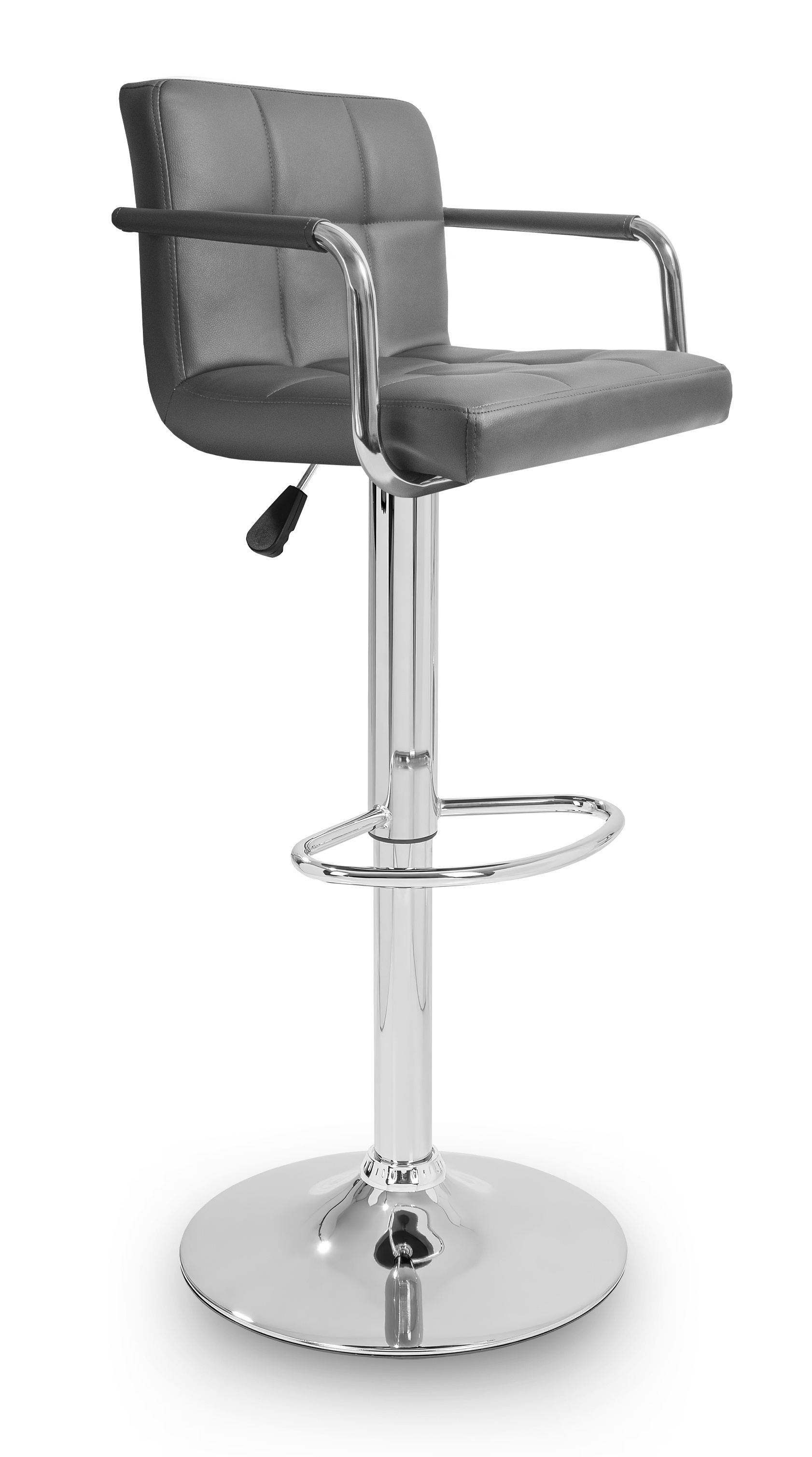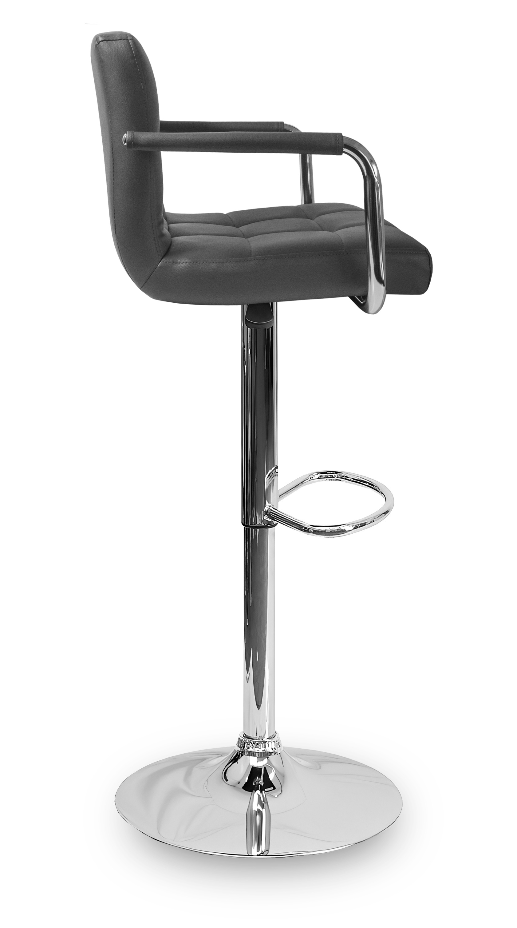 Stolička má praktickú podnožku z pochrómovaného kovu. Kruhová základňa a stredová noha sú vyrobené z chrómu v lesklej farbe.
