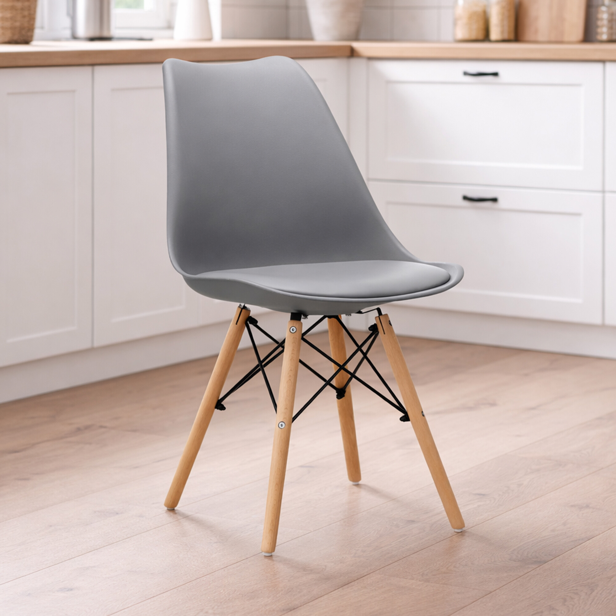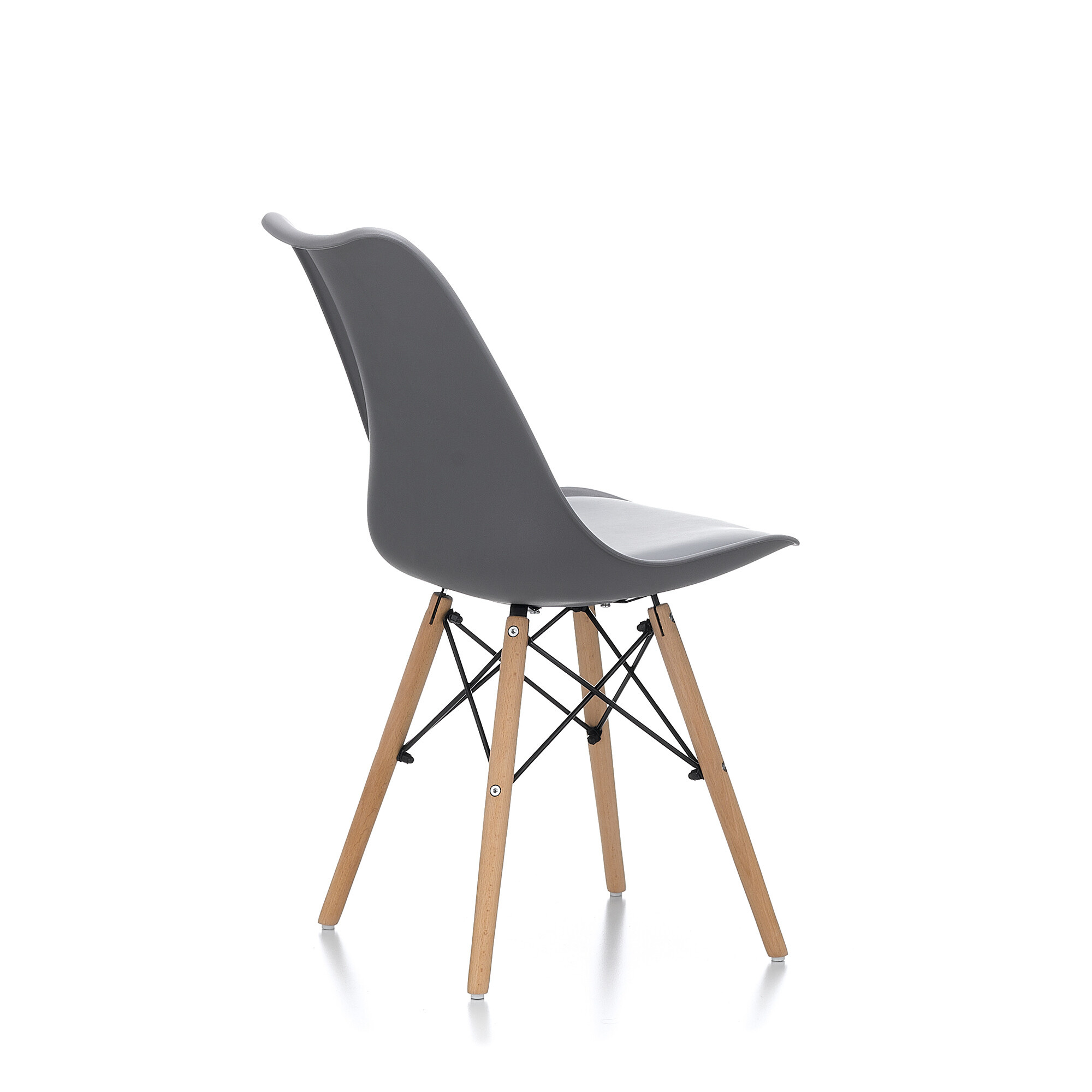 Stolička je vyrobená z kvalitného a odolného polypropylénu s vankúšom v poťahu z umelej kože v kombinácii s podnožou z bukového dreva.