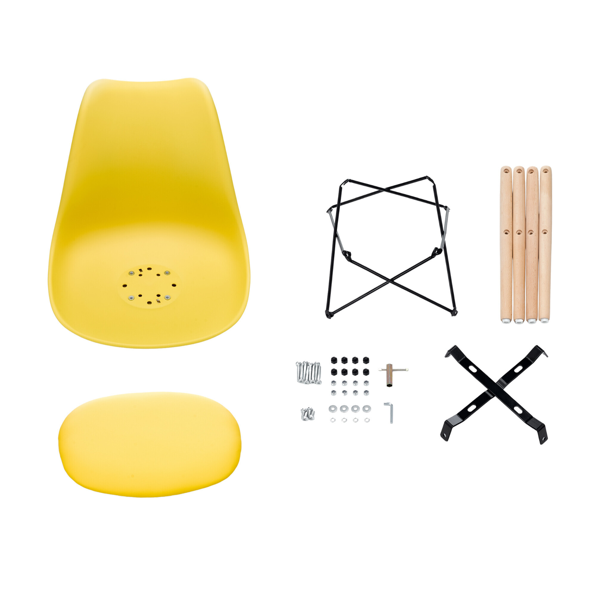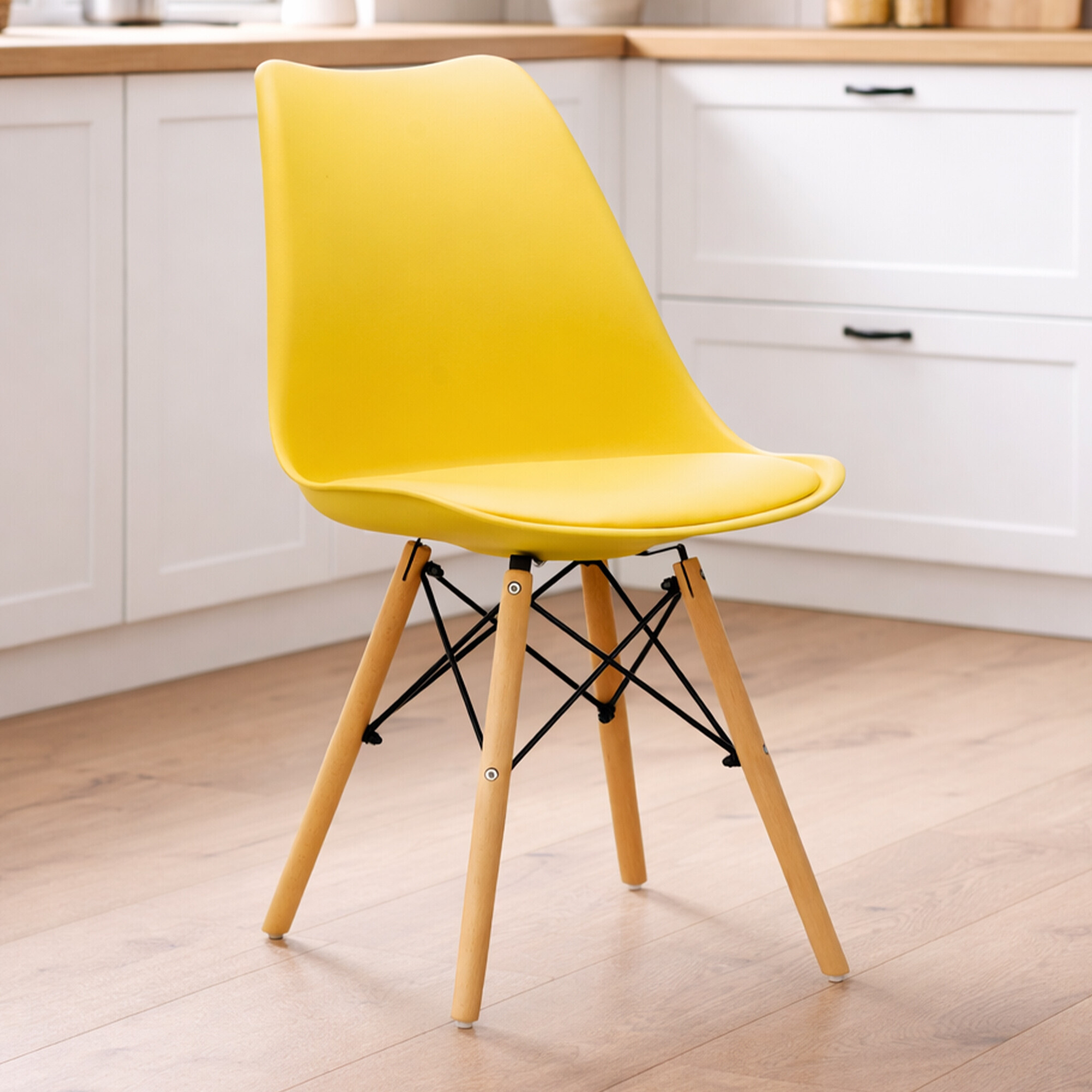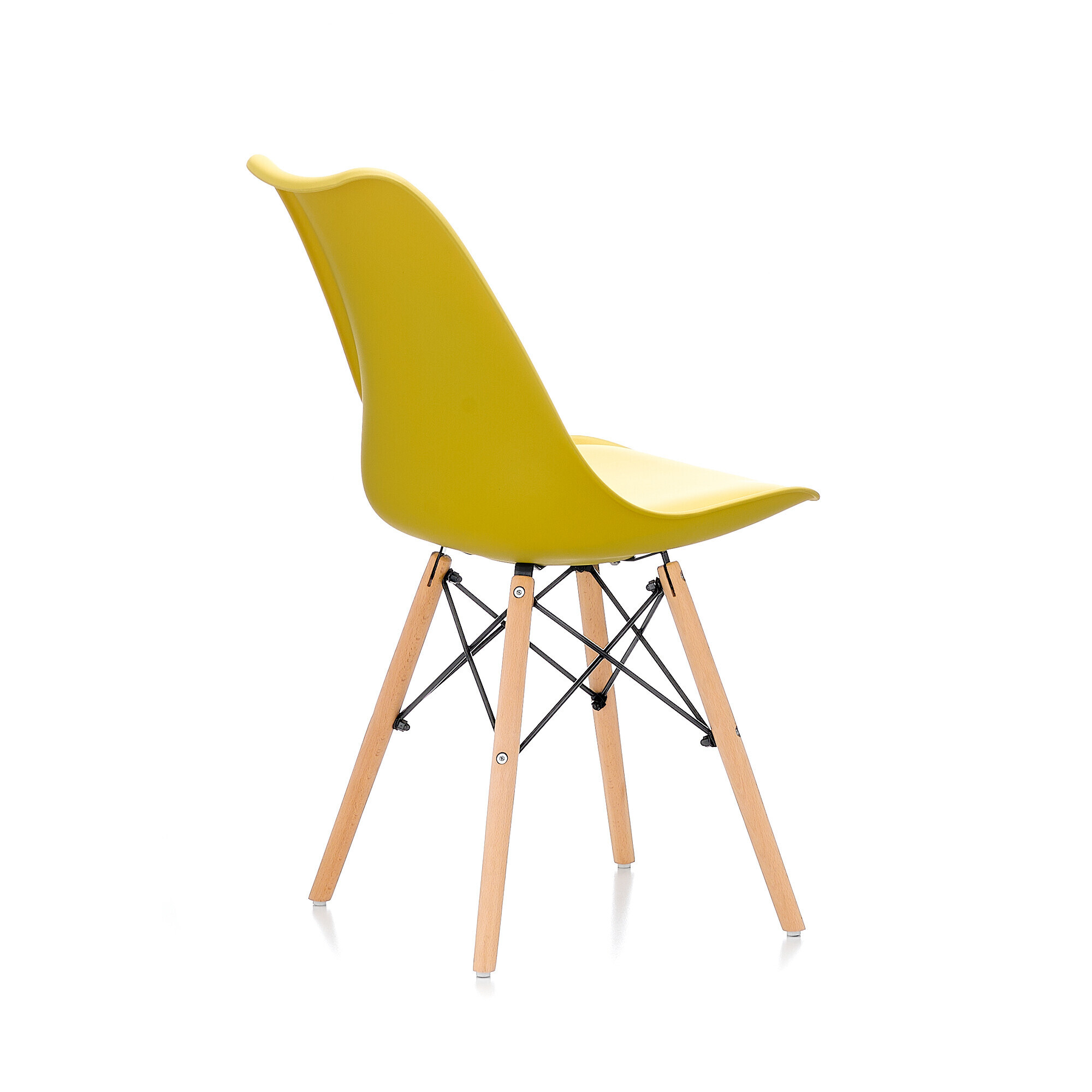 Stolička je vyrobená z kvalitného a odolného polypropylénu s vankúšom v poťahu z umelej kože v kombinácii s podnožou z bukového dreva.
