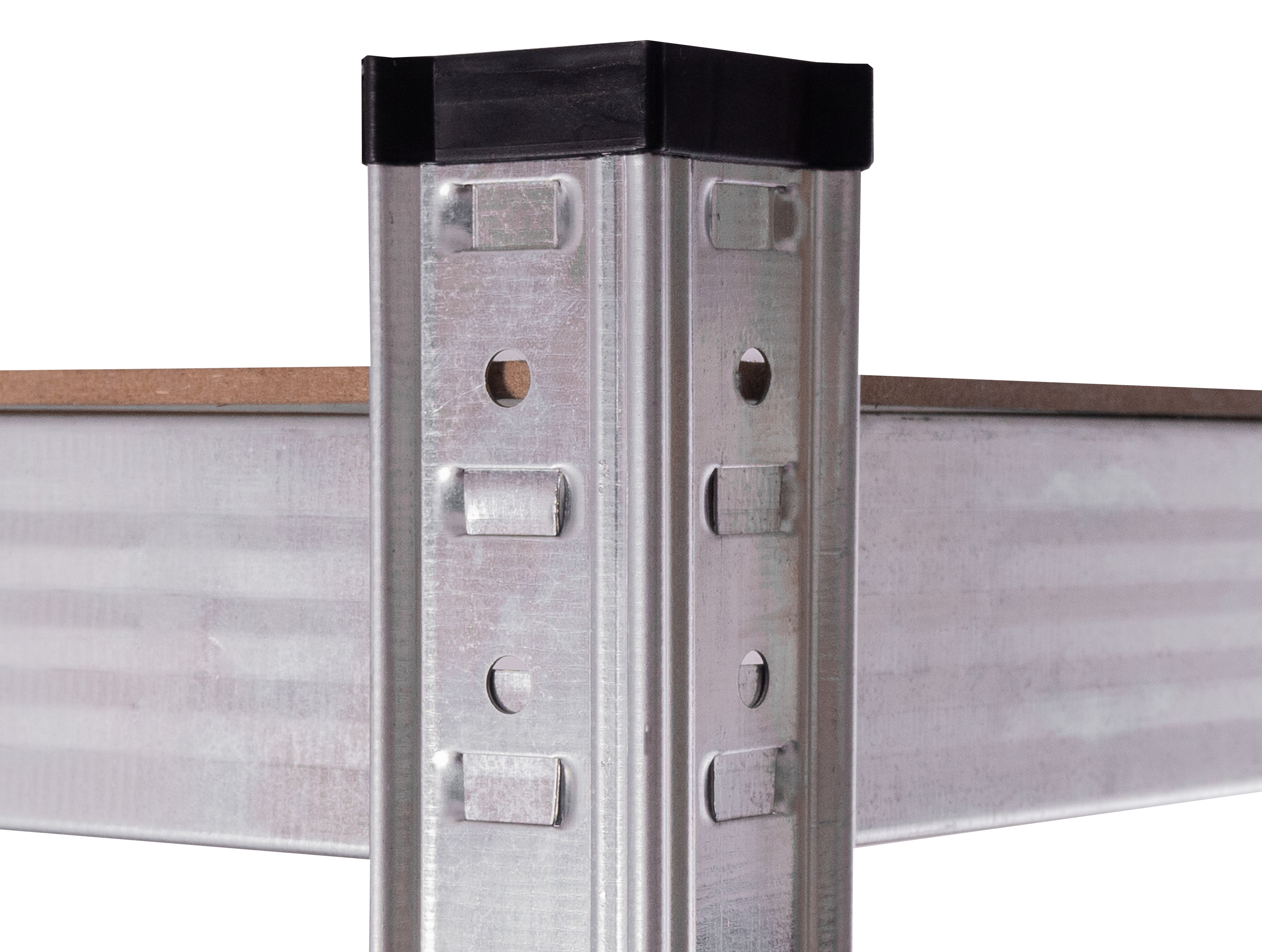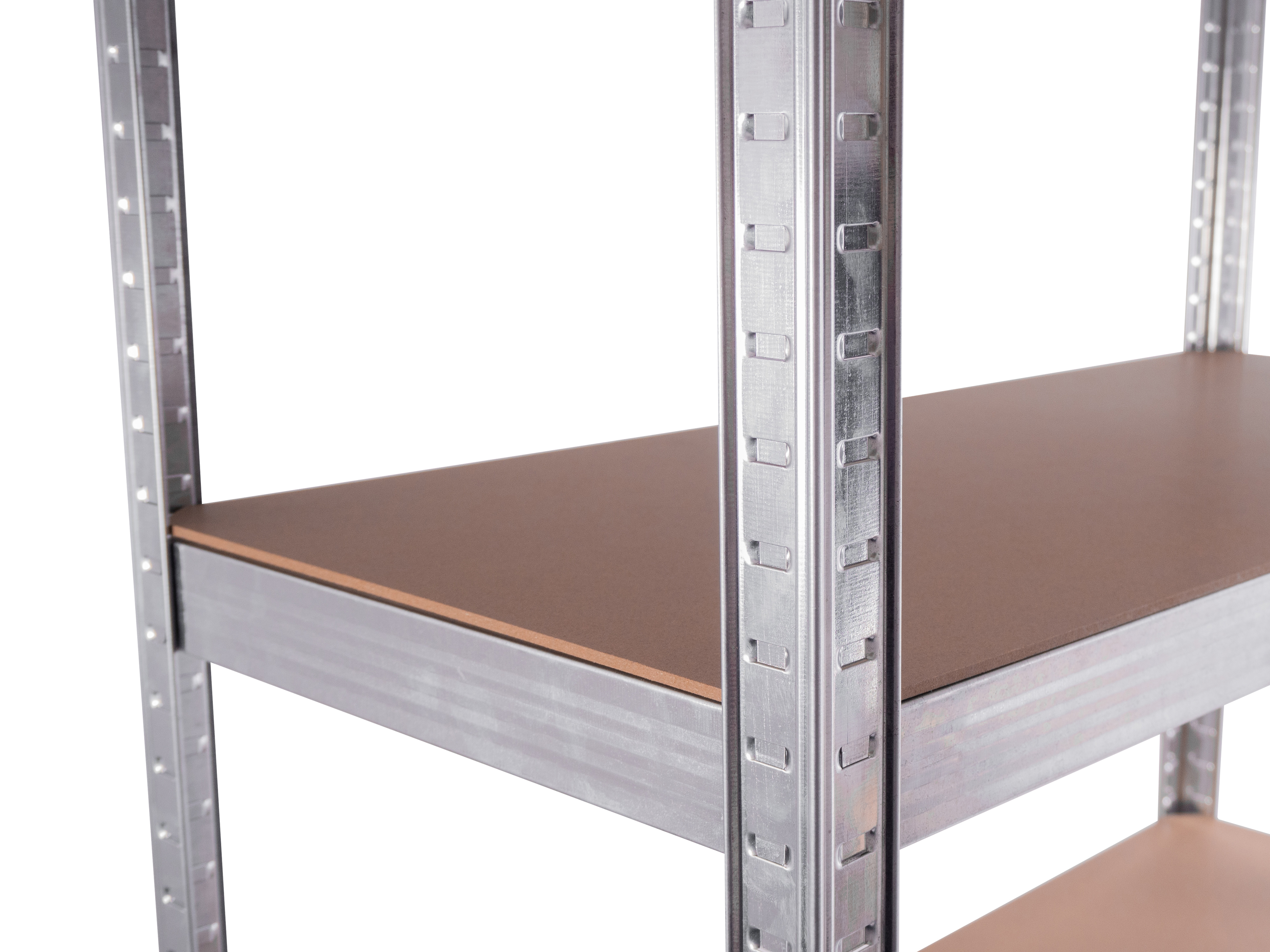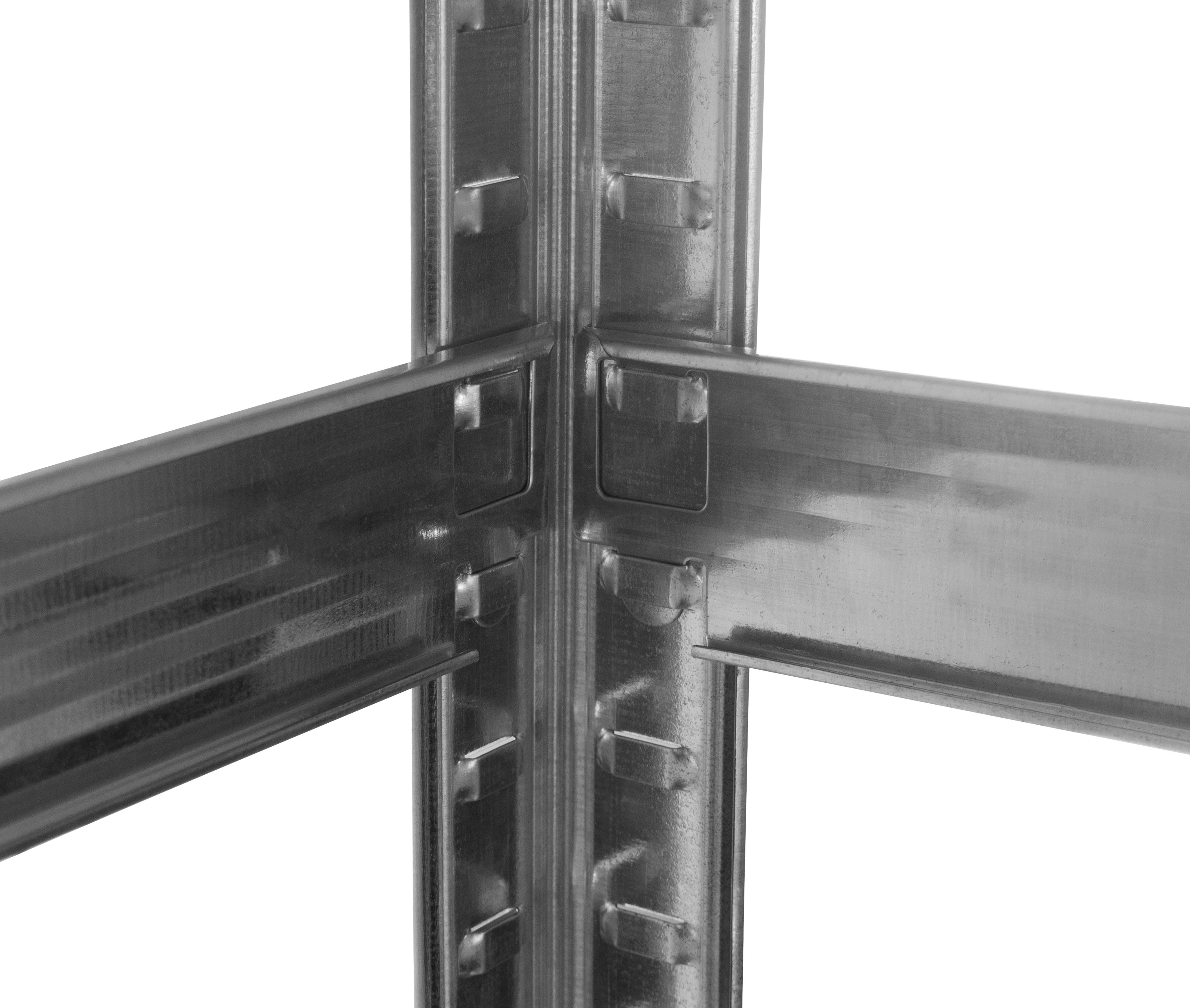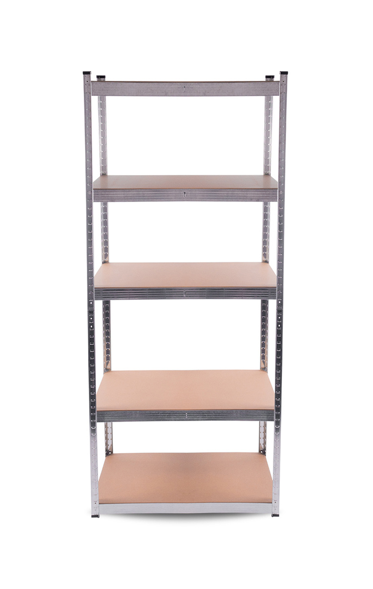 Vo výške približne 174 cm máte k dispozícii 5 políc z mdf, ktoré môžete vložiť podľa potreby. Pozinkovaný oceľový rám v striebornej farbe zaručuje stabilitu a vysokú nosnosť približne 375 kg (približne 75 kg na jednu policu).
