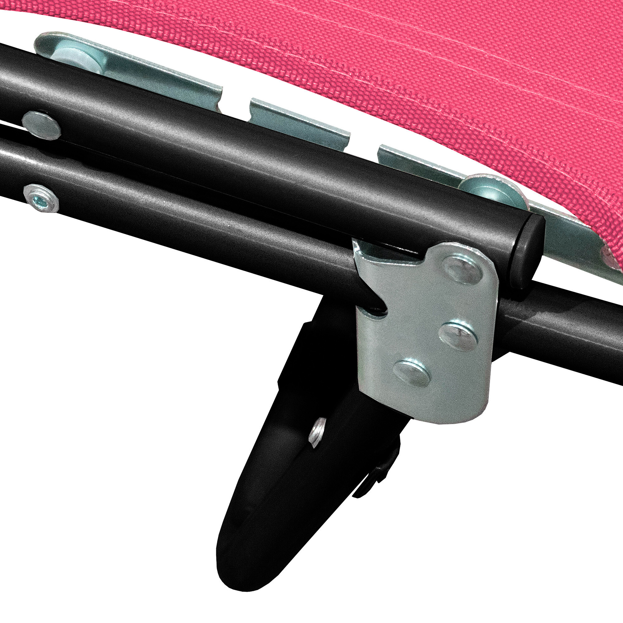 Skladacie záhradné lehátko so spevnenou oceľovou konštrukciou, v modernom dizajne, vhodné pre záhrady, na kempovanie či pláže.