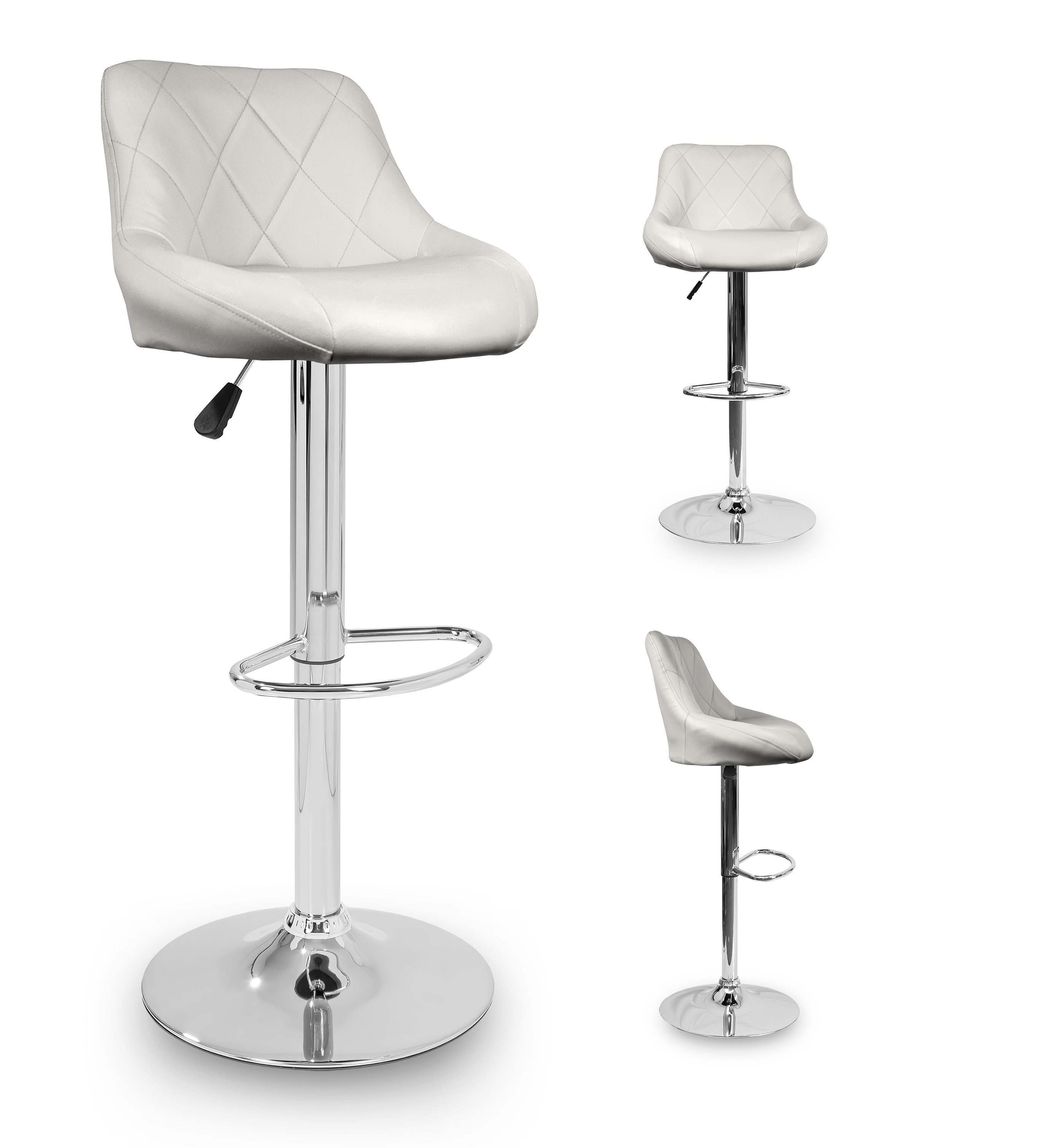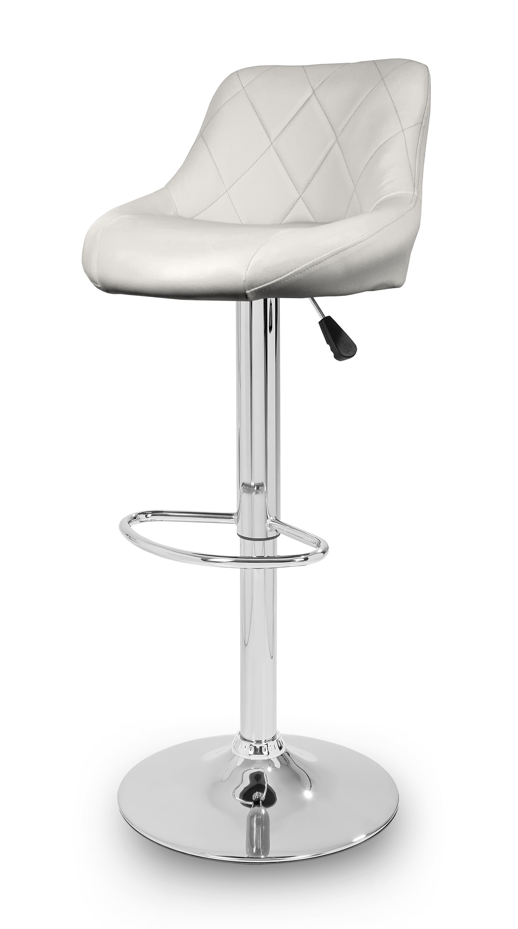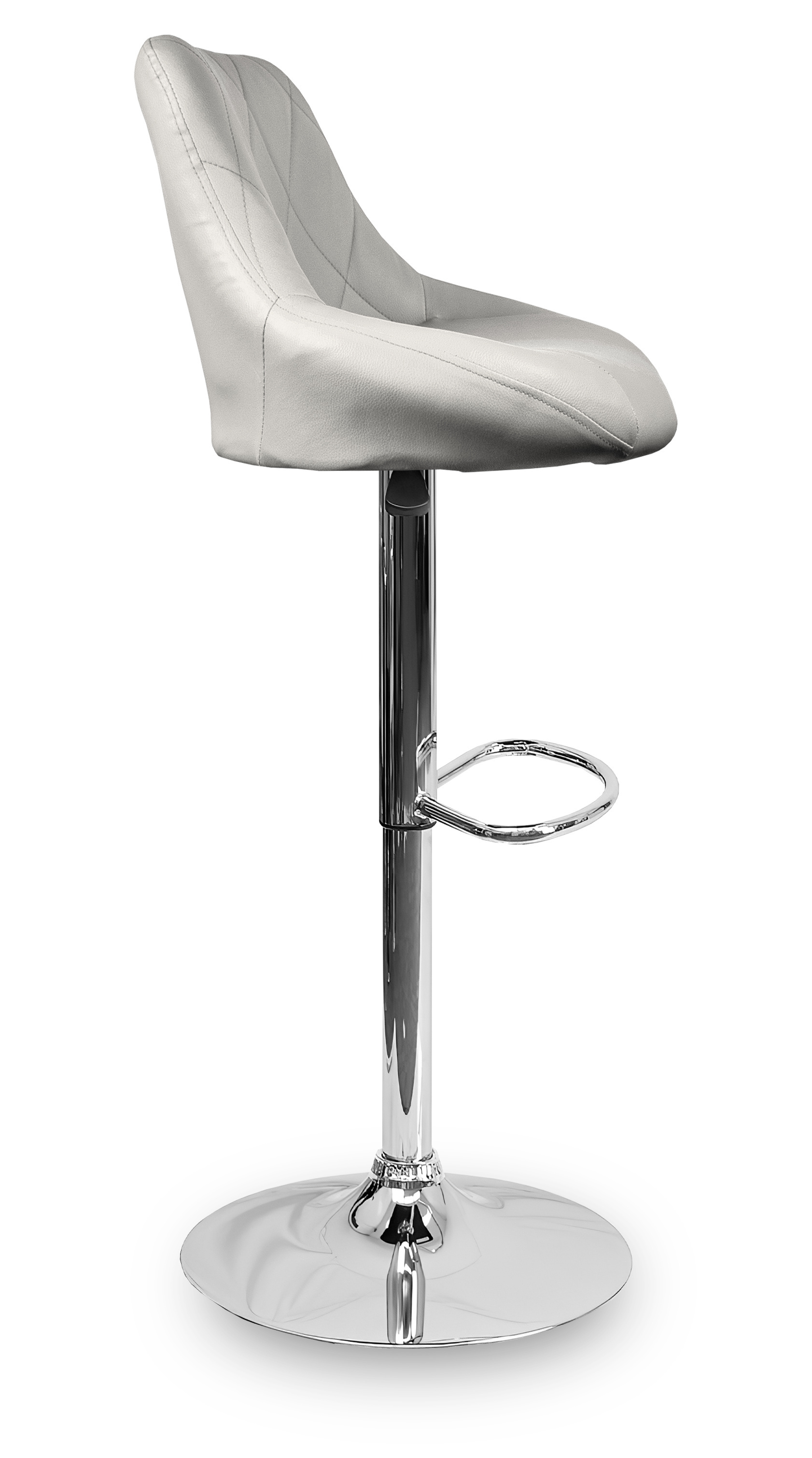 Stolička má praktickú podnožku z pochrómovaného kovu. Kruhová základňa a stredová noha sú vyrobené z chrómu v lesklej farbe.