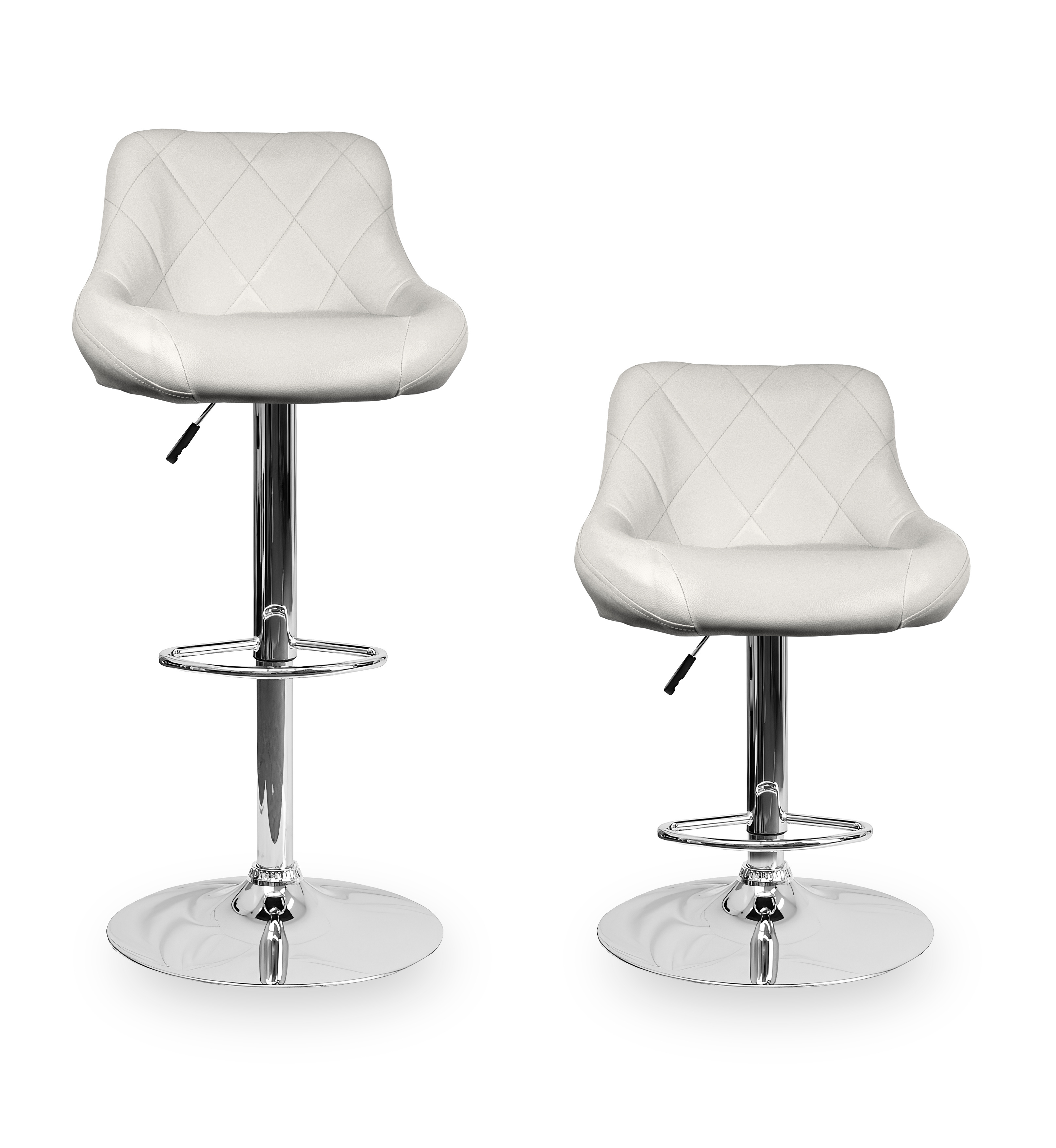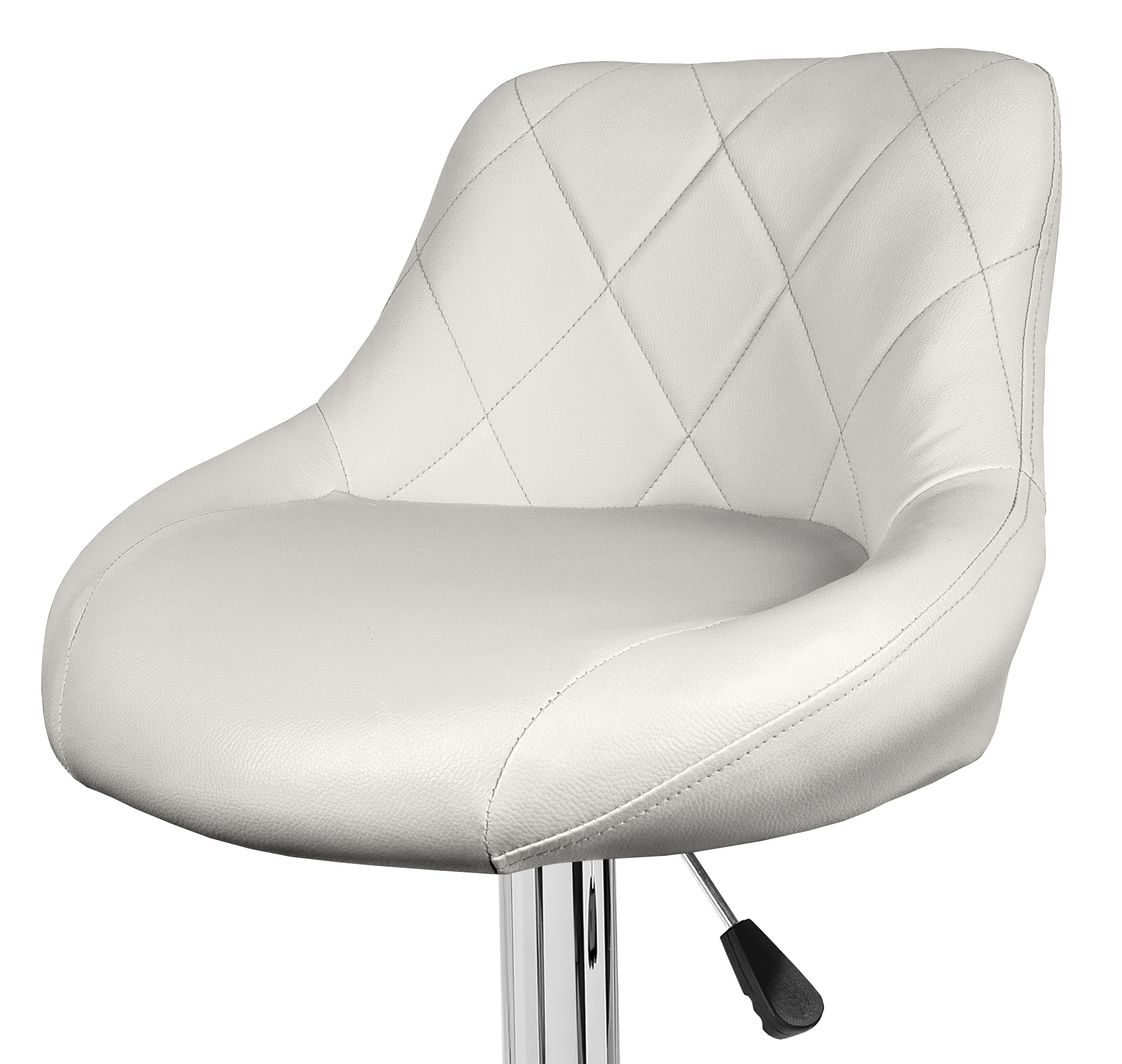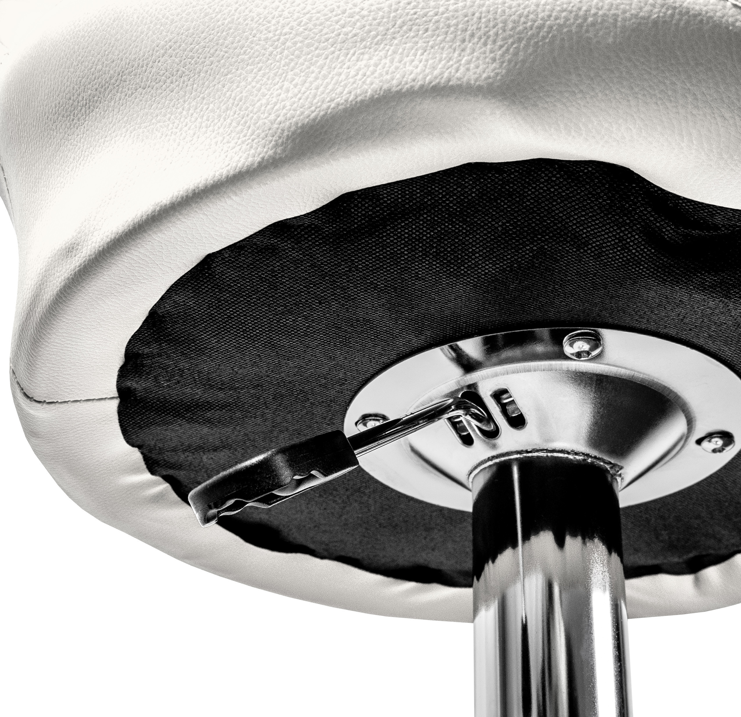 Stolička má praktickú podnožku z pochrómovaného kovu. Kruhová základňa a stredová noha sú vyrobené z chrómu v lesklej farbe.