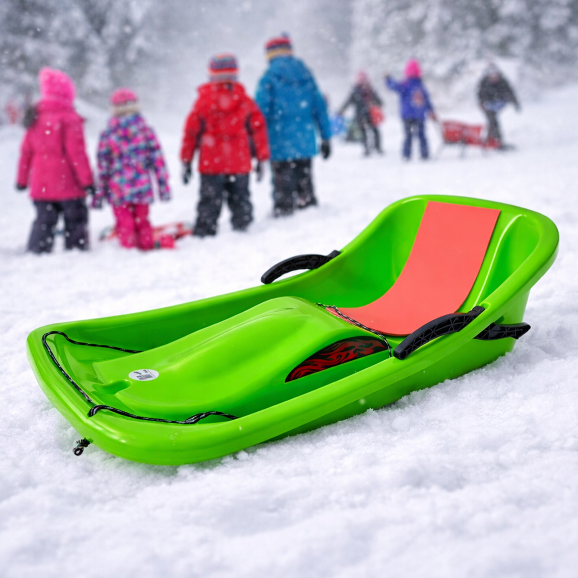 Detské klasické boby v modernom dizajne, bez ostrých hrán, s dvoma nezávislými brzdami.