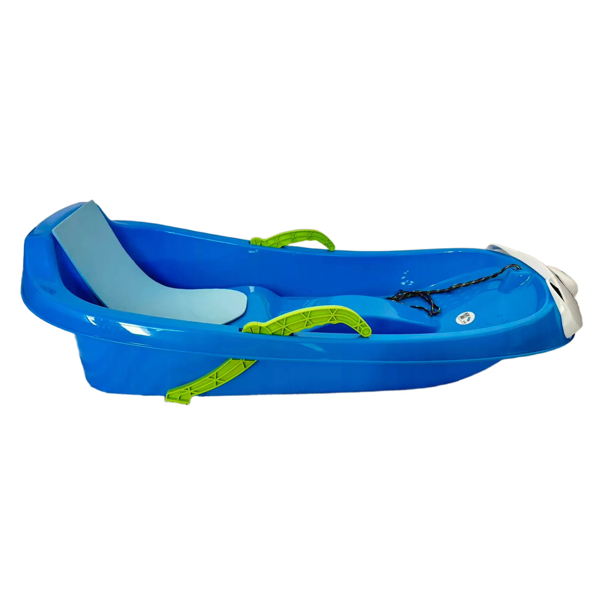 Plastové boby s nosnosťou 50 kg, mrazuvzdorný materiál, ergonomická sedačka s opierkou a dve bočné brzdy pre bezpečné a jednoduché riadenie. Rozmery 102 × 46 × 28 cm.