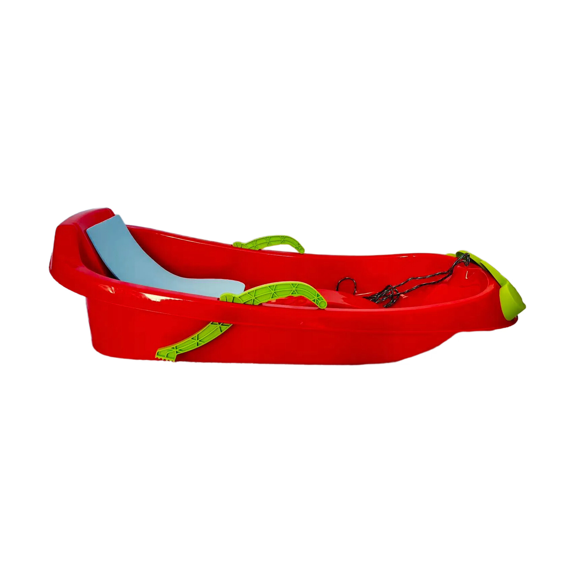Plastové boby s nosnosťou 50 kg, mrazuvzdorný materiál, ergonomická sedačka s opierkou a dve bočné brzdy pre bezpečné a jednoduché riadenie. Rozmery 102 × 46 × 28 cm.