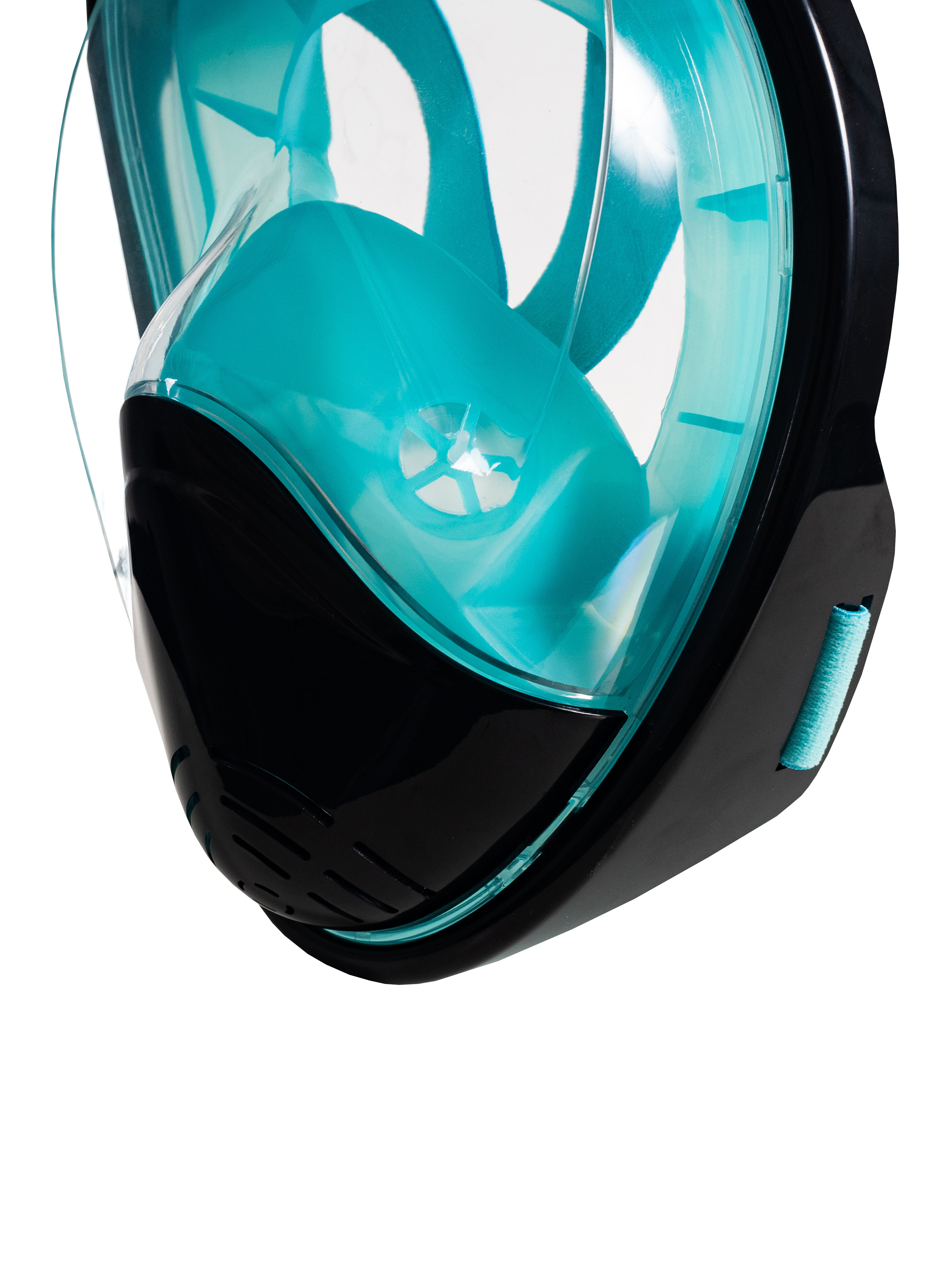 Pomocou textilných nastaviteľných popruhov možno upraviť veľkosť masky pre maximálne pohodlie.Maska so šnorchlom sa nemlží a umožňuje 180° videnie.