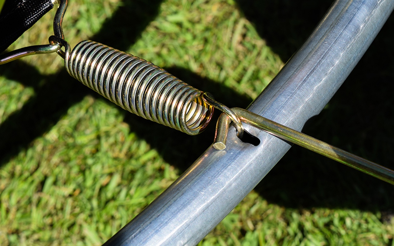Maximálnu bezpečnosť trampolíny zaisťuje polstrovaný obvodový pás (kryt pružín), ktorý zakrýva pružiny po celom obvode trampolíny.