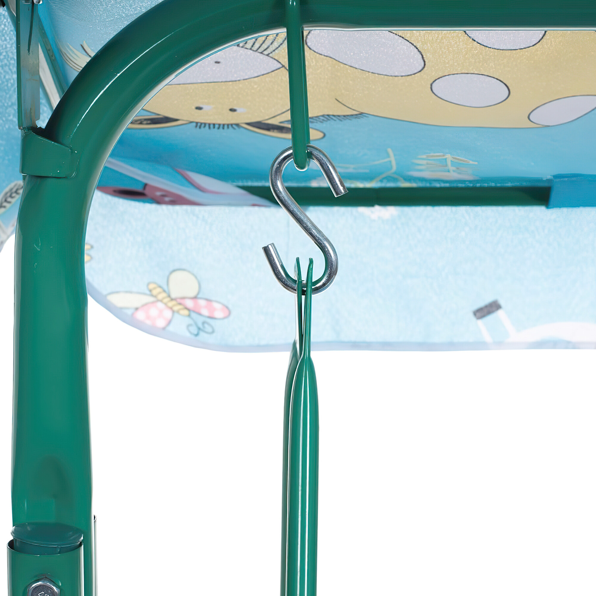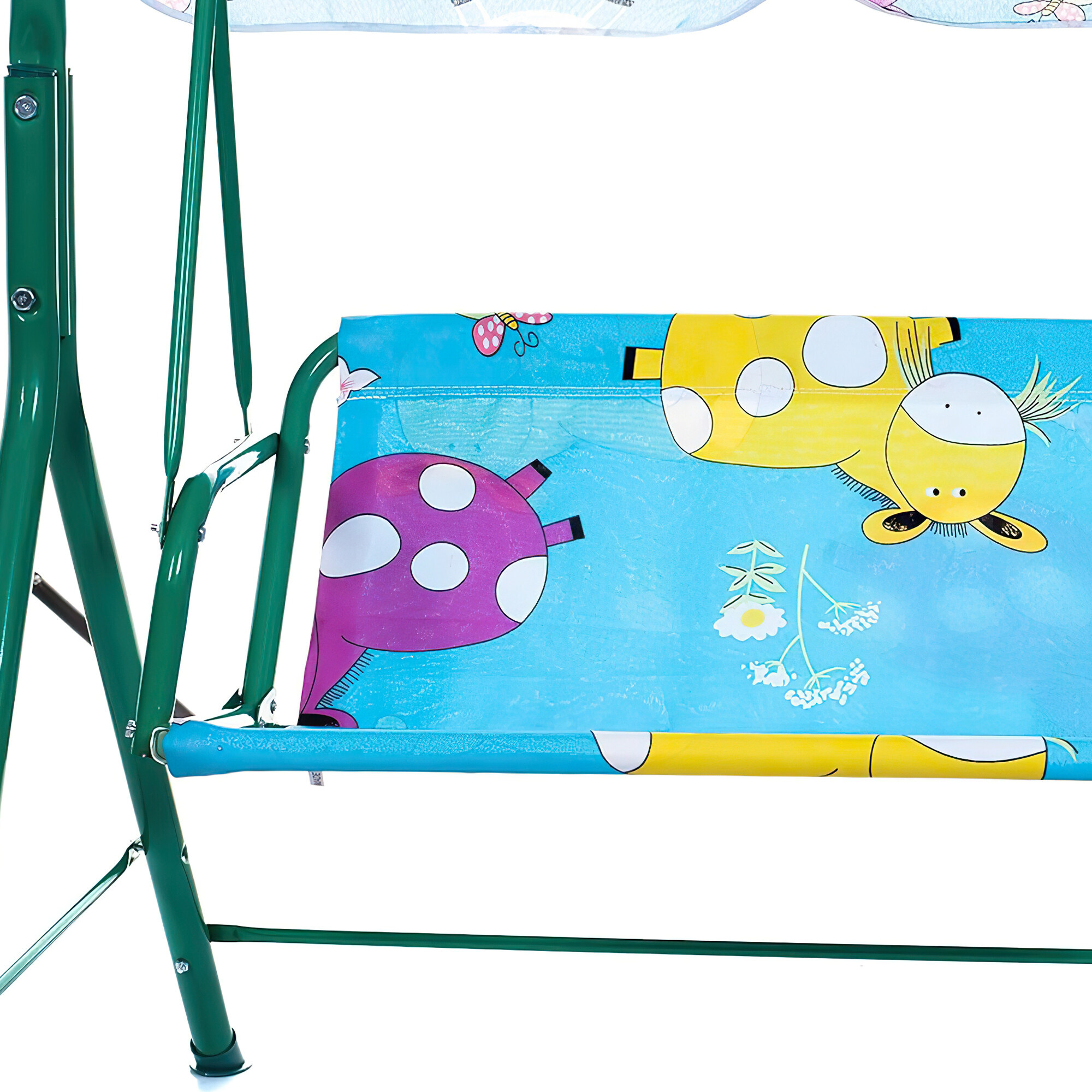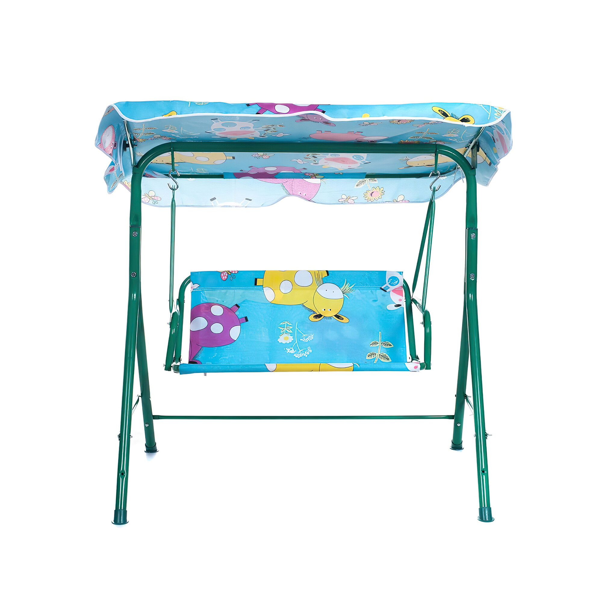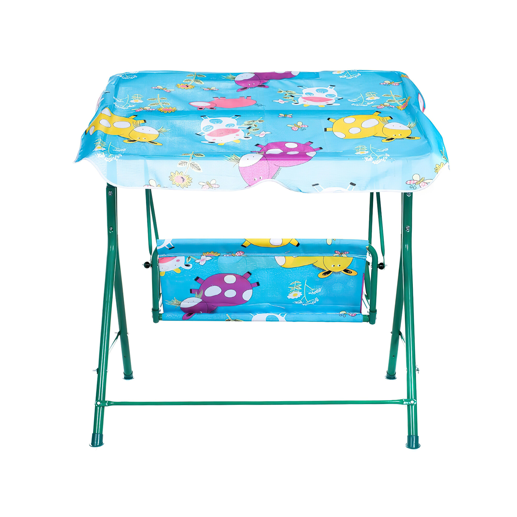 Detská hojdačka je navrhnutá s dôrazom na bezpečnosť a pohodlie. Rám hojdačky je vyrobený z odolnej ocele, ktorá zaručuje stabilitu a pevnosť. Poťah hojdačky je z príjemného polyesteru, ktorý je ľahko udržiavateľný a odolný proti poveternostným vplyvom.