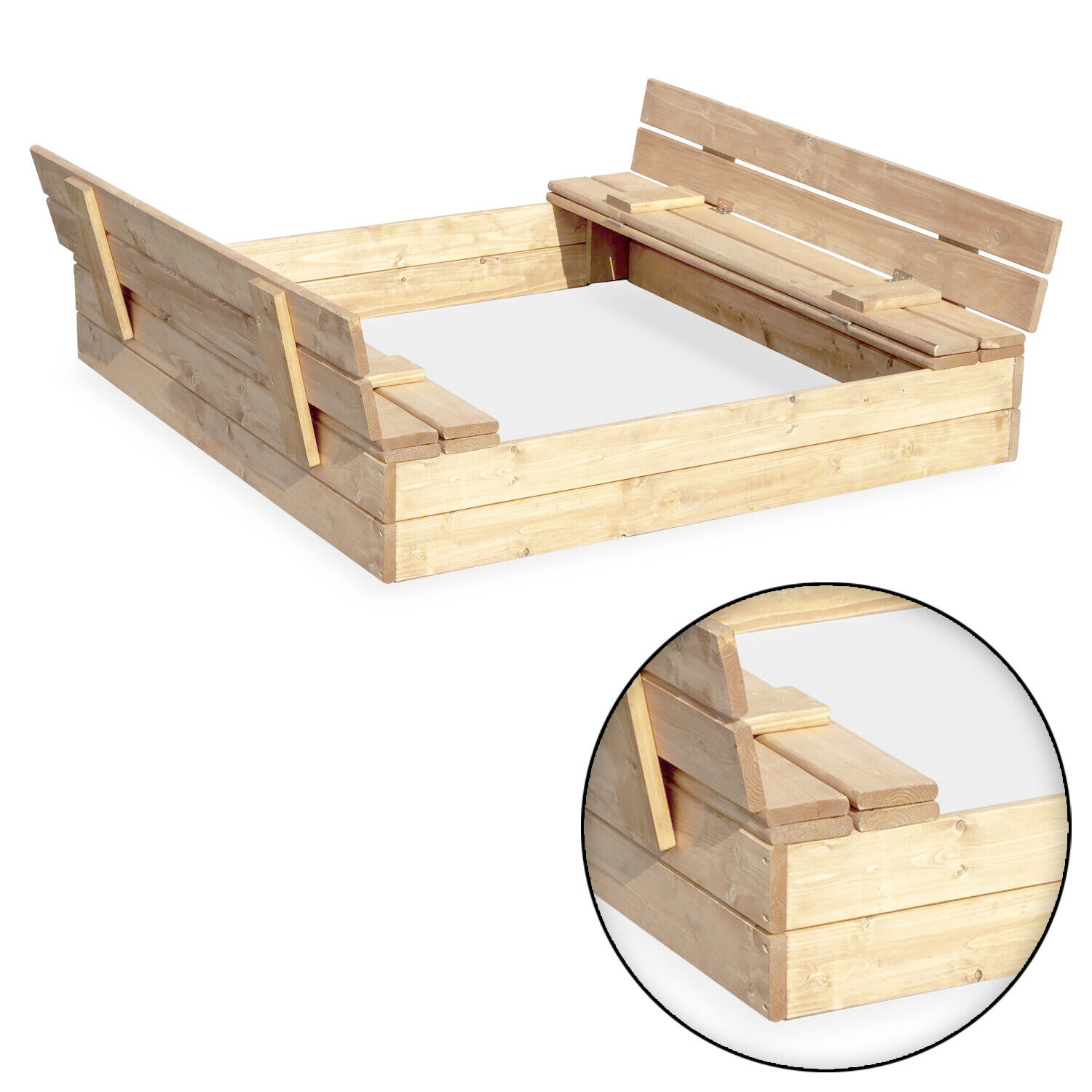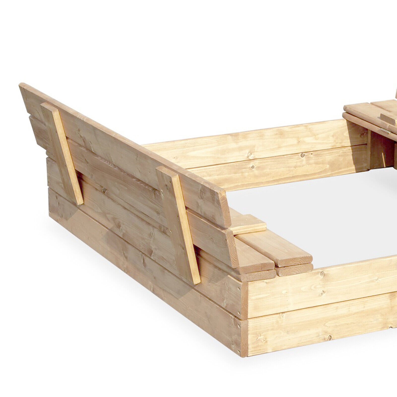 V rozloženom stave sa z poklopu stávajú praktické lavice. Je vyrobené zo smrekového dreva.