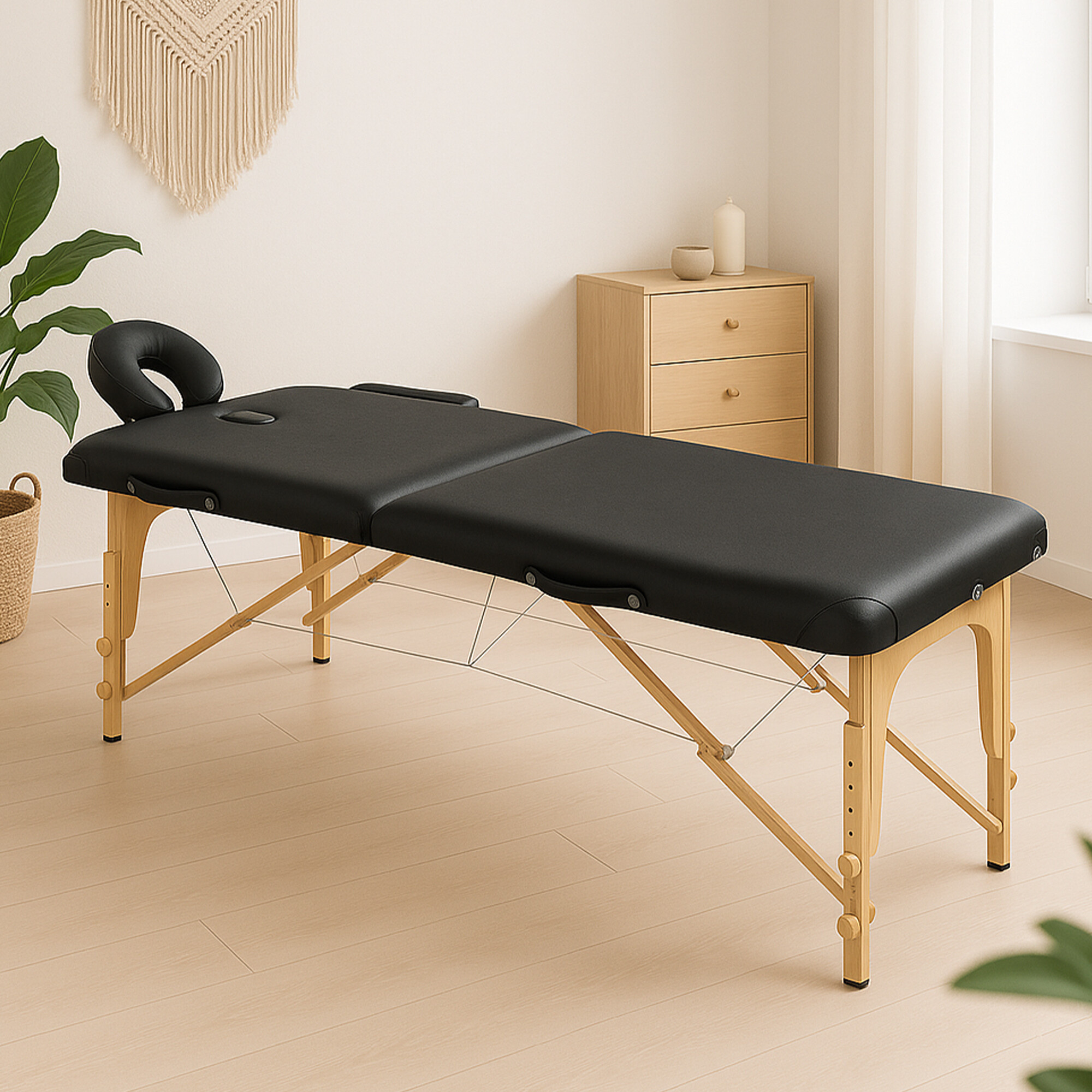 Veľmi pohodlné prenosné dvojdielne masážne lehátko s opierkou hlavy, otvorom na tvár, lakťovými opierkami.