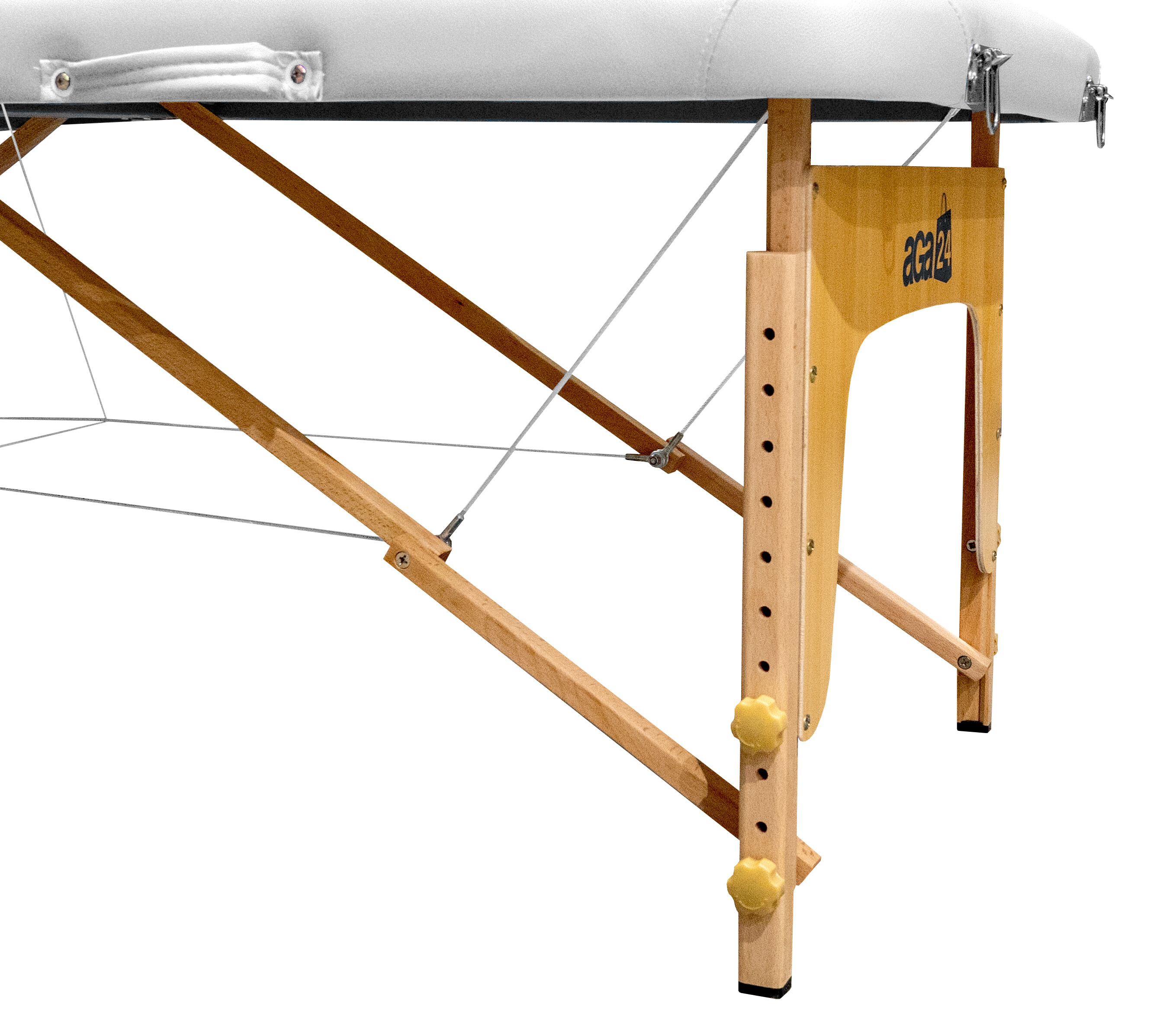 Odolná konštrukcia z kvalitného dreva patrí medzi hlavné prednosti lehátka. Vďaka zosilneniu pomocou oceľových laniek a dvoch istiacej kolíkov na každej podpernej nohe je schopné uniesť záťaž až 250 kg.