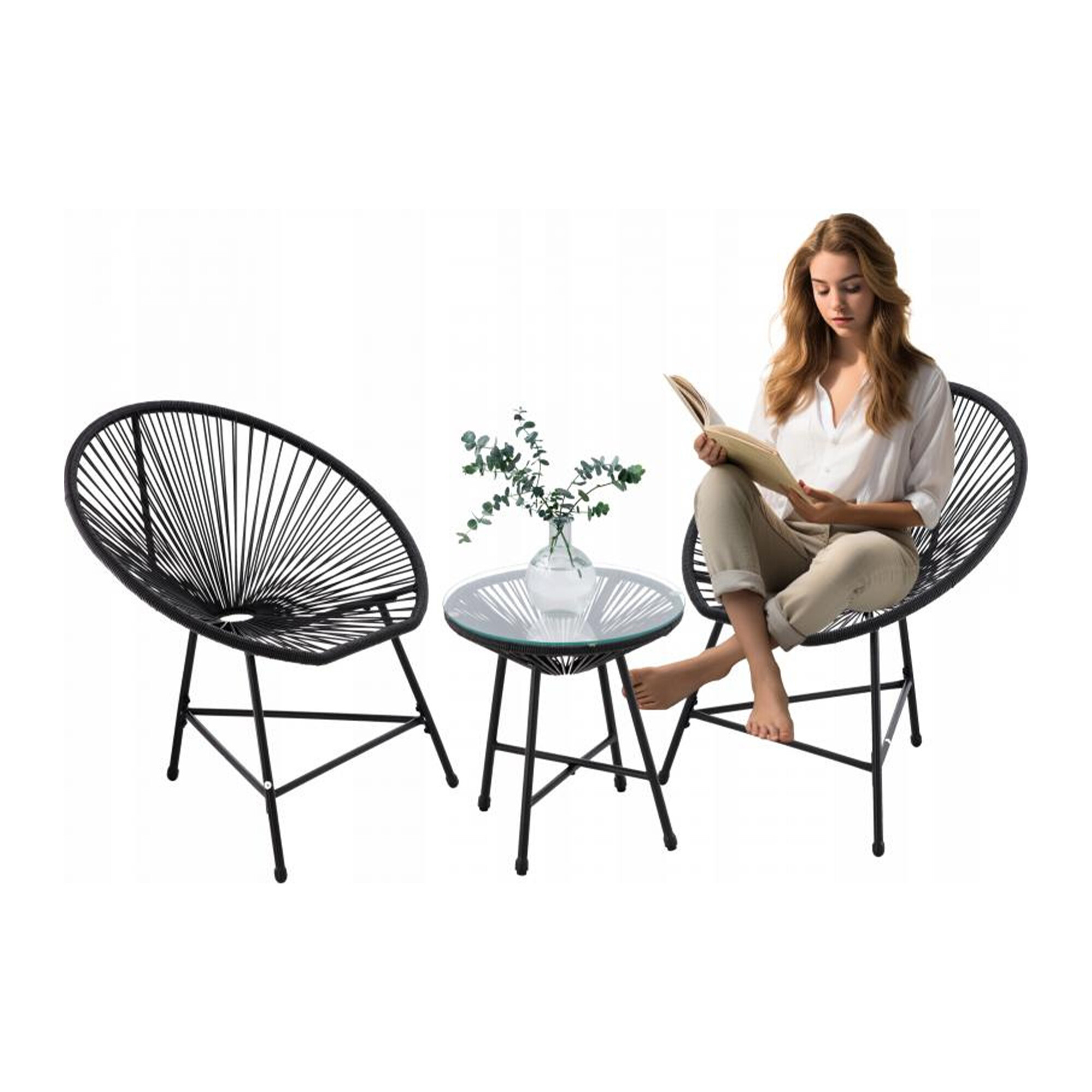 Kreslá majú originálny a ergonomický tvar v podobe vysokého chrbtového operadla a prepletenej štruktúry, ktorá poskytuje pohodlné sedenie a zároveň zaisťuje optimálnu podporu pre vaše telo. Tieto kreslá sú vyrobené z odolného materiálu, ktorý je odolný voči poveternostným vplyvom a dlhodobému používaniu.Čierna farba navyše dodáva kreslám elegantný vzhľad.