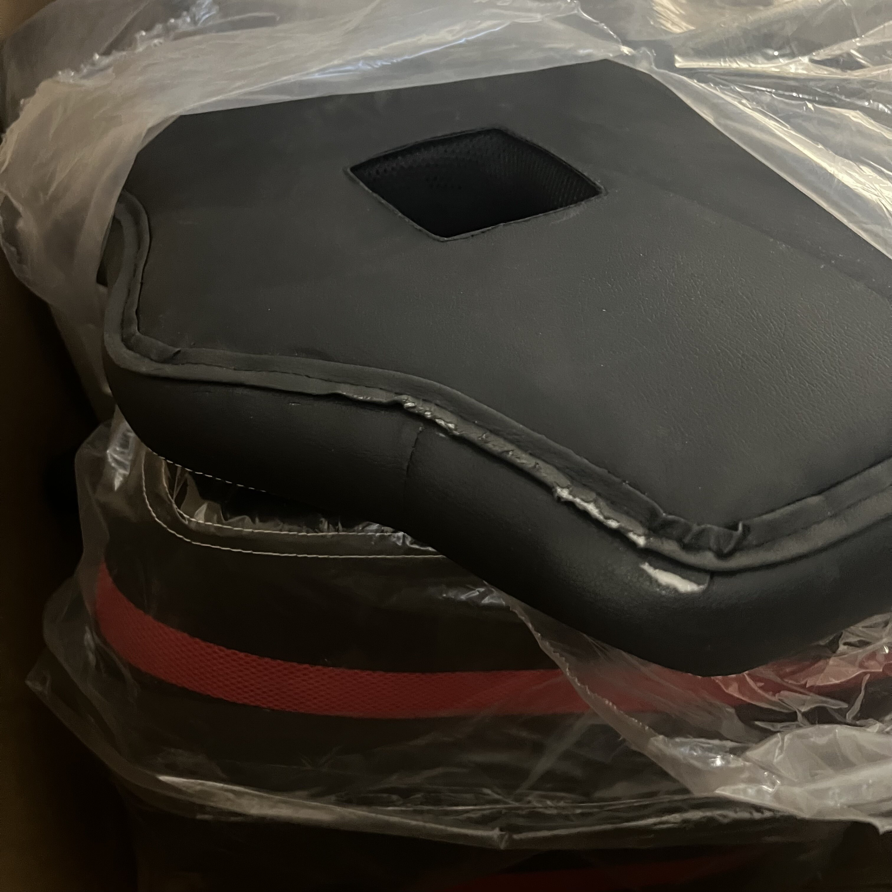 Herná stolička má poškodenú zadnú stranu operadla. Nemá originálny obal.