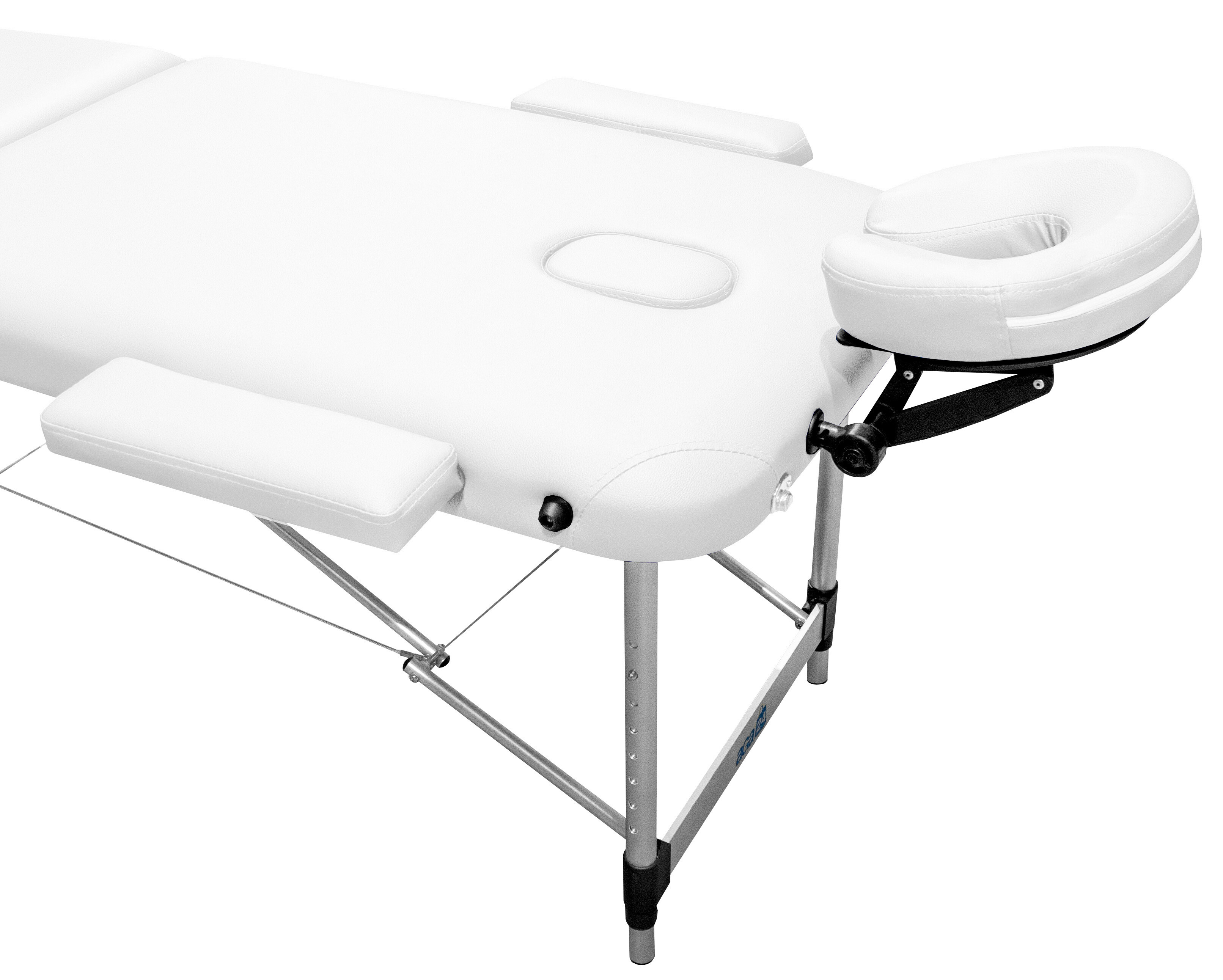 Záruka komfortu je zabezpečená vďaka šírke a dĺžke masážneho lehátka, plynule regulovateľnému podhlavníku, otvoru na tvár so záslepkou a odnímateľným opierkam na ruky.