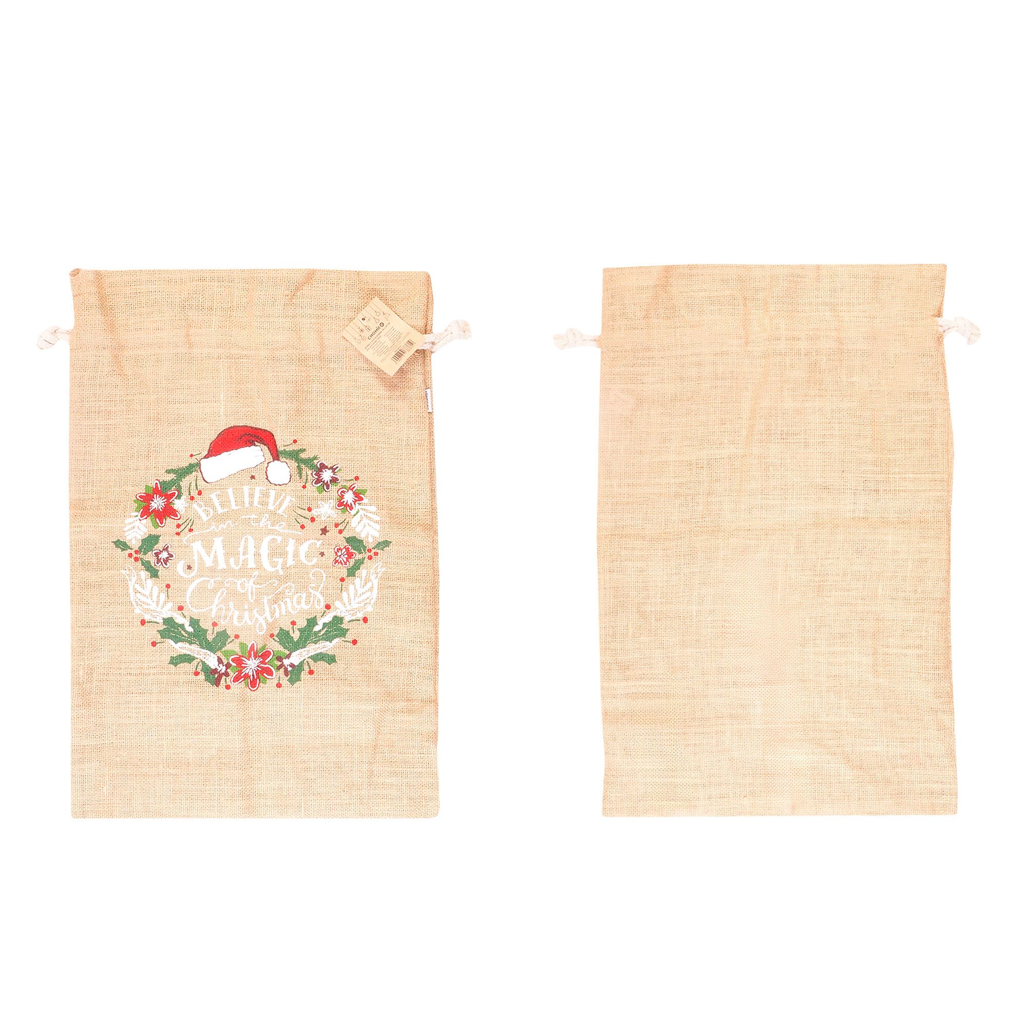 Táto darčeková taška je vyrobená z kvalitnej juty, čo je prírodný materiál známy svojou pevnosťou a odolnosťou. Juta je nielen ekologická, ale tiež prináša do vášho domova nádych prírody a rustikálneho kúzla. Vďaka svojmu prírodnému vzhľadu sa táto taška skvele hodí k akémukoľvek vianočnému dekoru a dodá vašim darčekom jedinečný a osobitý vzhľad.