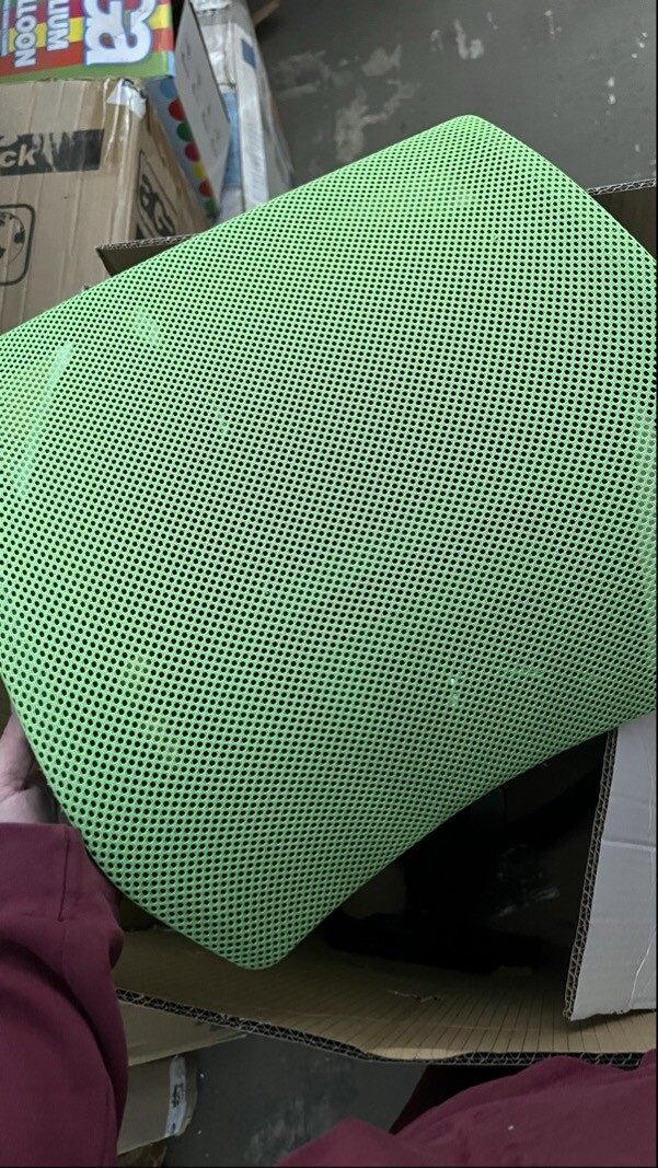 Kancelárske kreslo bez opierky hlavy, ktoré je vyrobené v čierno-zelenej farbe v kombinácii sieťoviny a plastu.