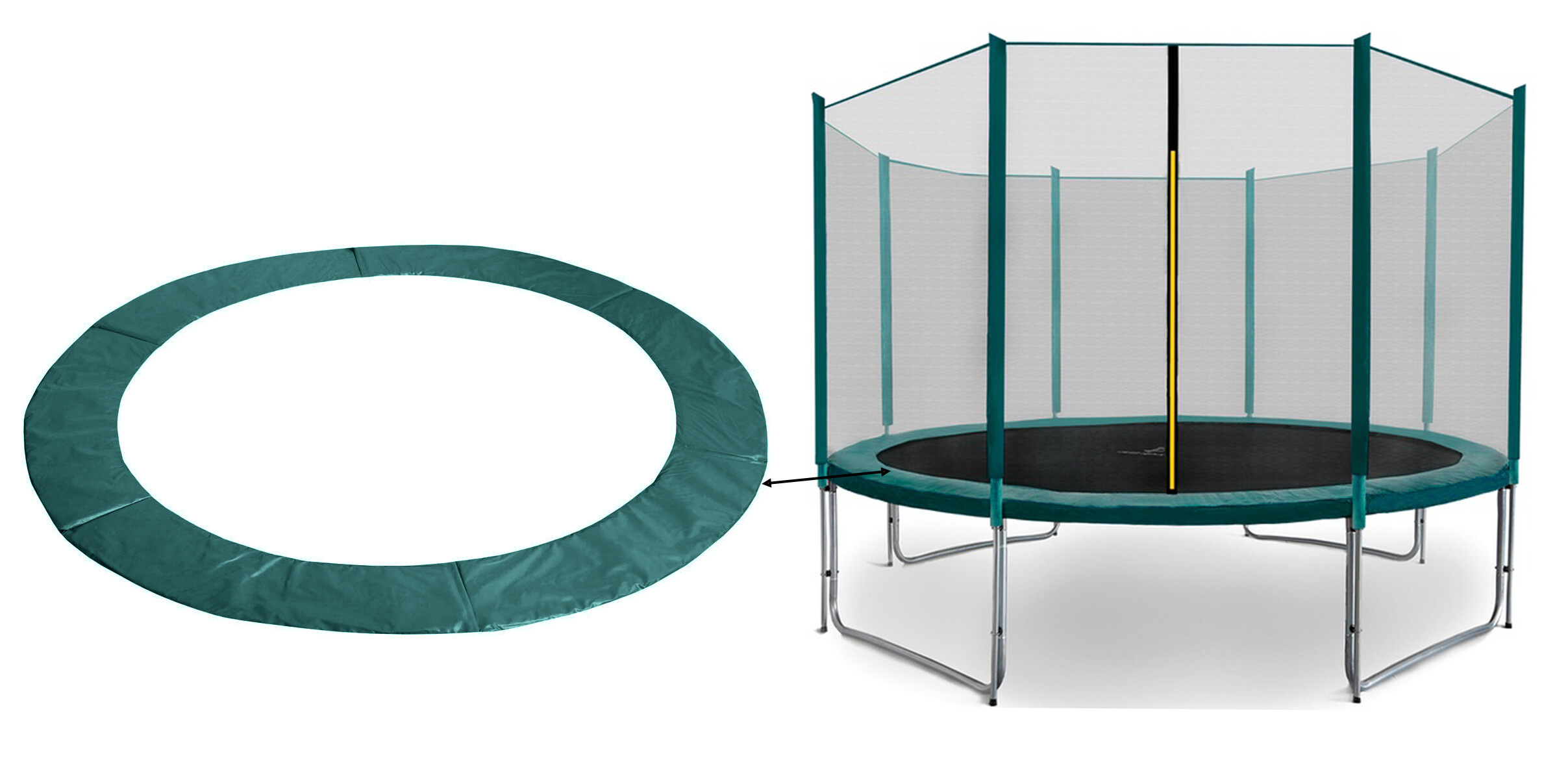 Kryt pokrýva pružiny po celom obvode trampolíny aa trampolínu možno veľmi ľahko a rýchlo nainštalovať bez potreby náradia.