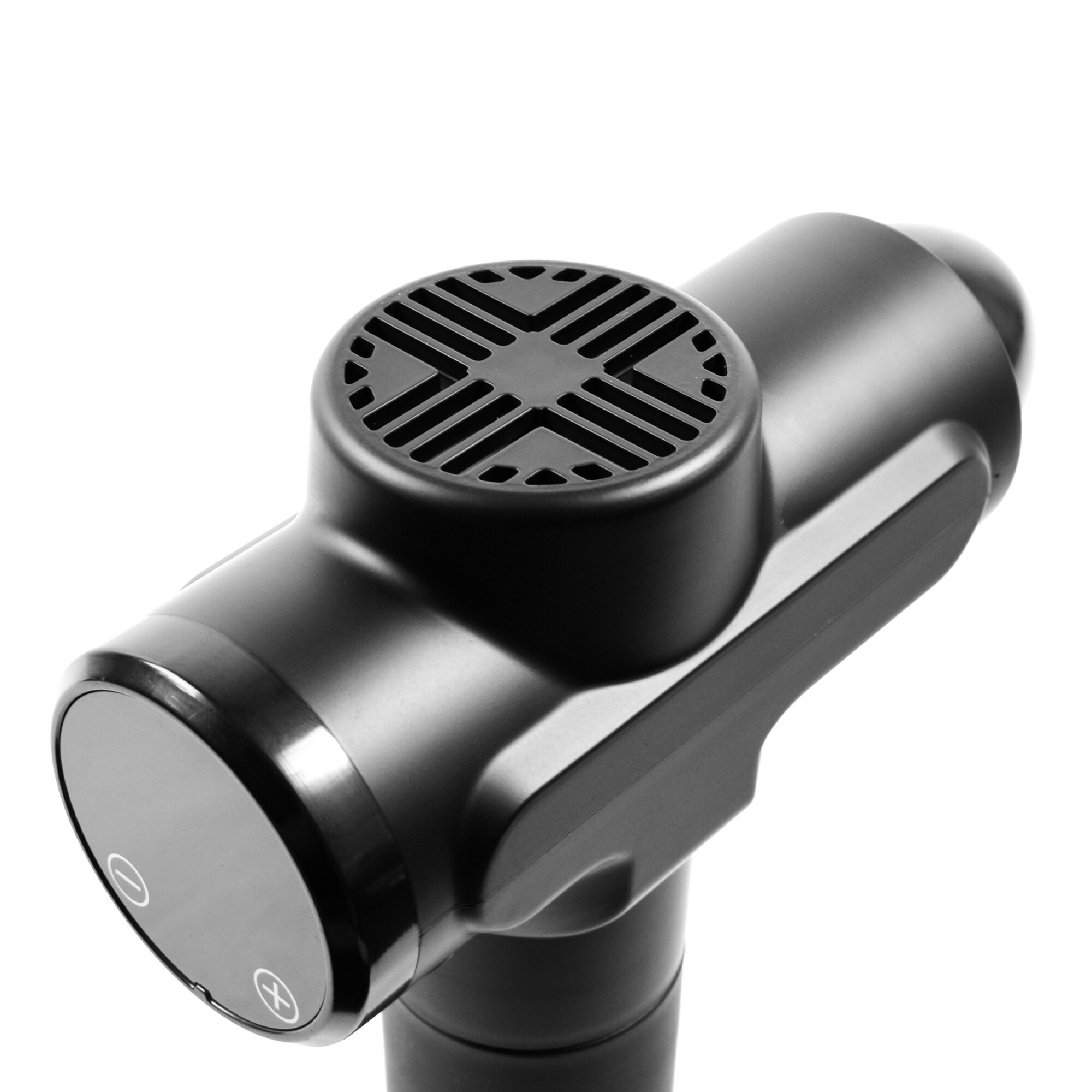 Masážna pištoľ má zabudovanú Lithium-iontovú batériu s kapacitou 2500mAh, ktorá vydrží na jedno nabitie až 3 hodiny, podľa používaného rýchlostného stupňa.