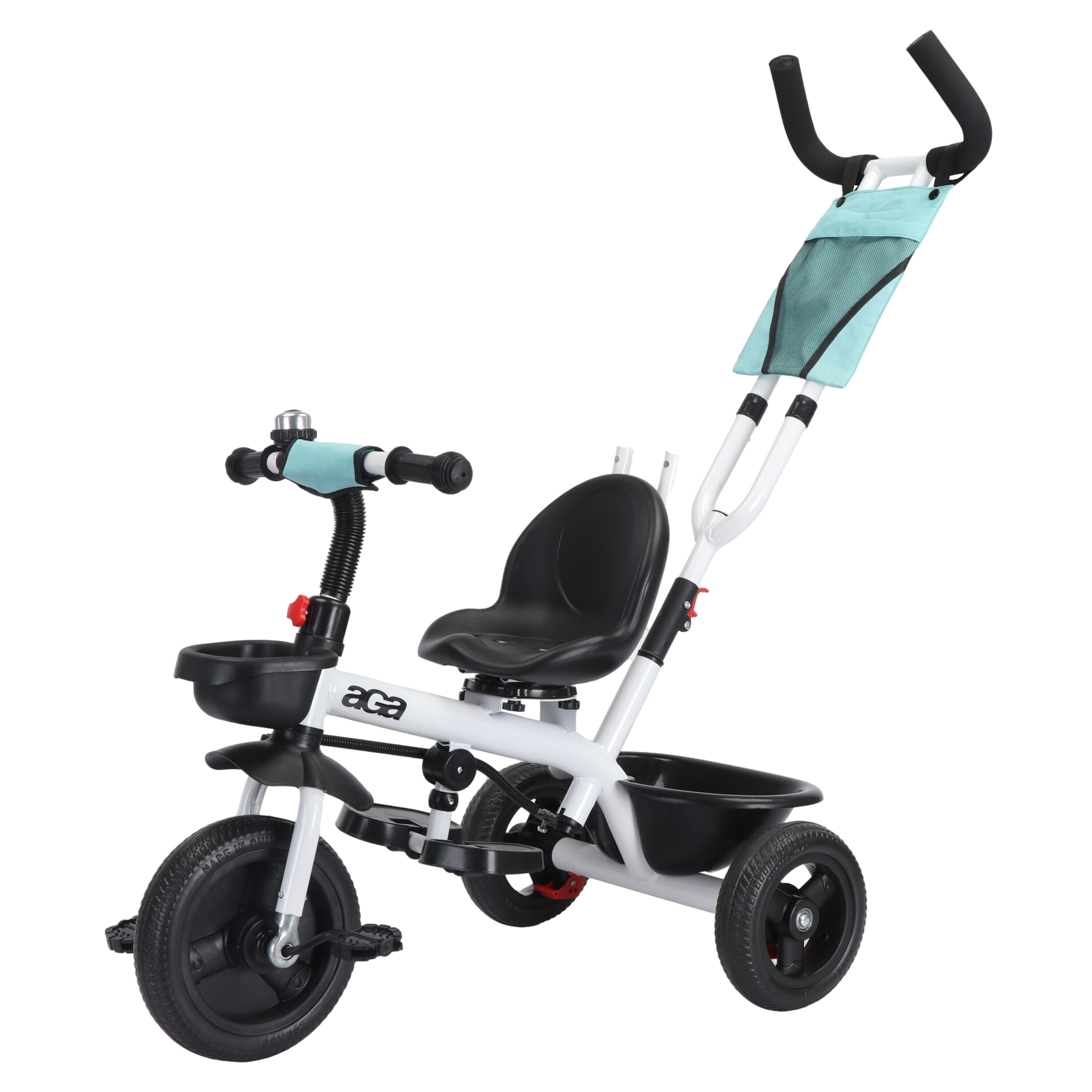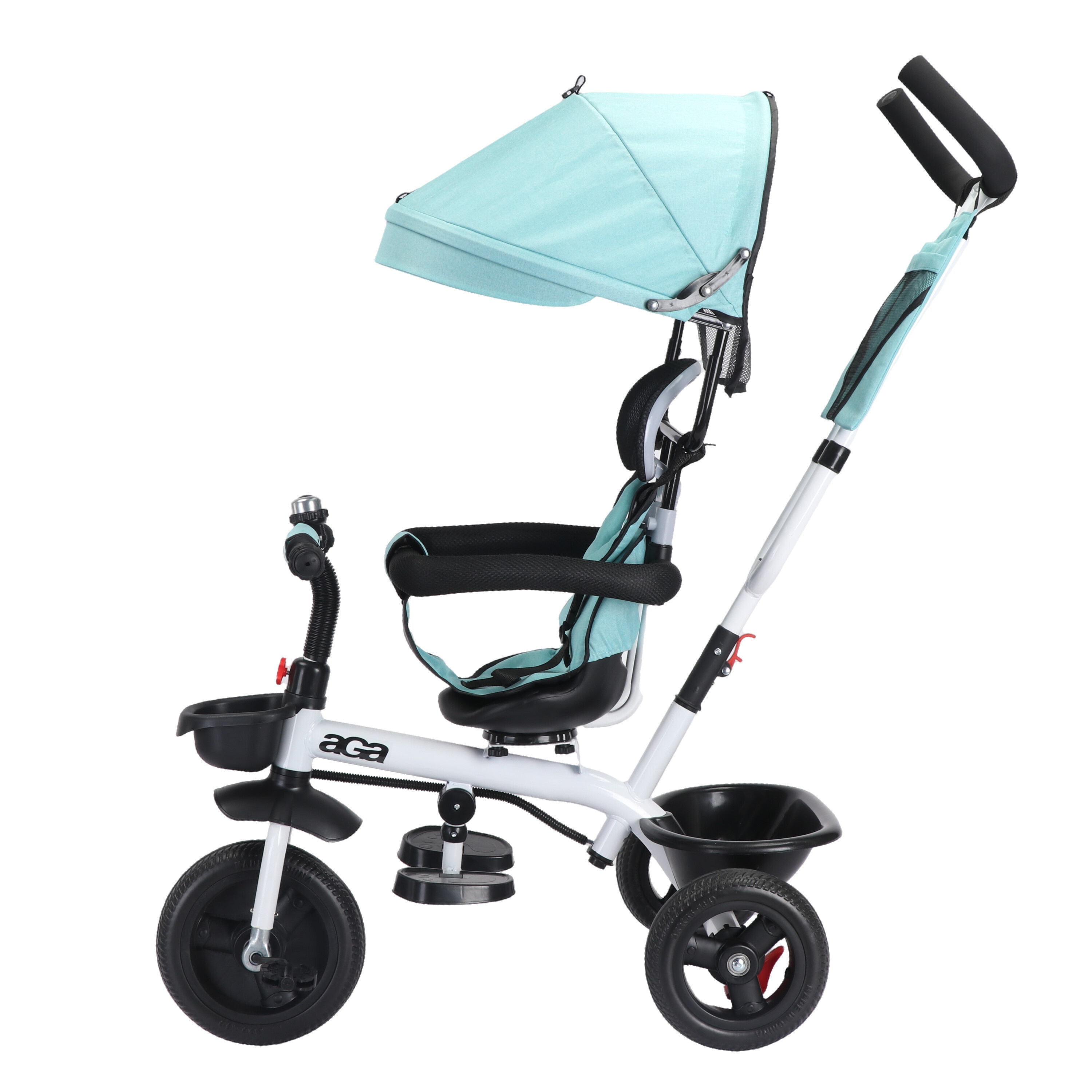 Sedadlo možno otáčať o 360° v smere jazdy alebo proti smeru jazdy rodiča. V zadnej a prednej časti trojkolky je úložný košík.