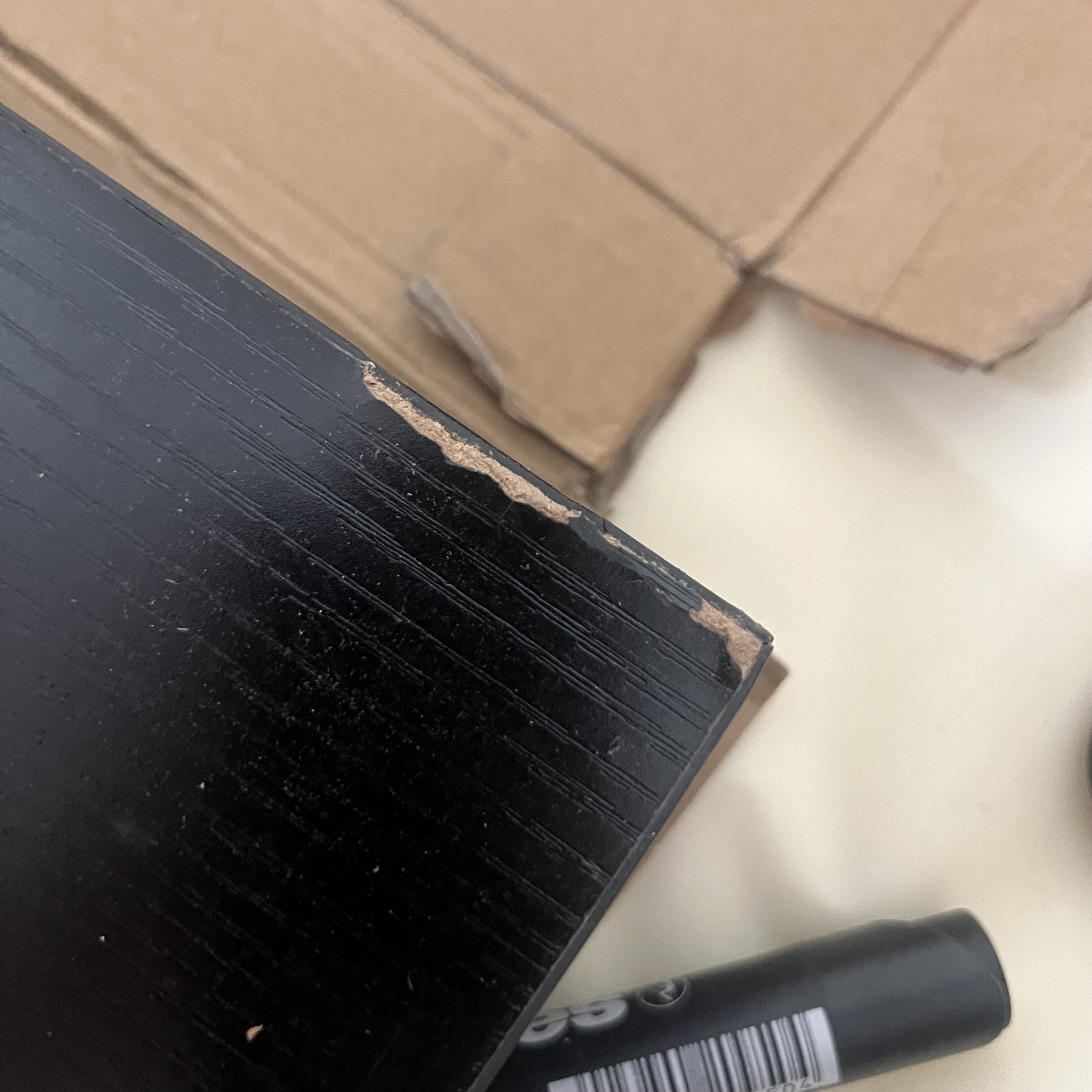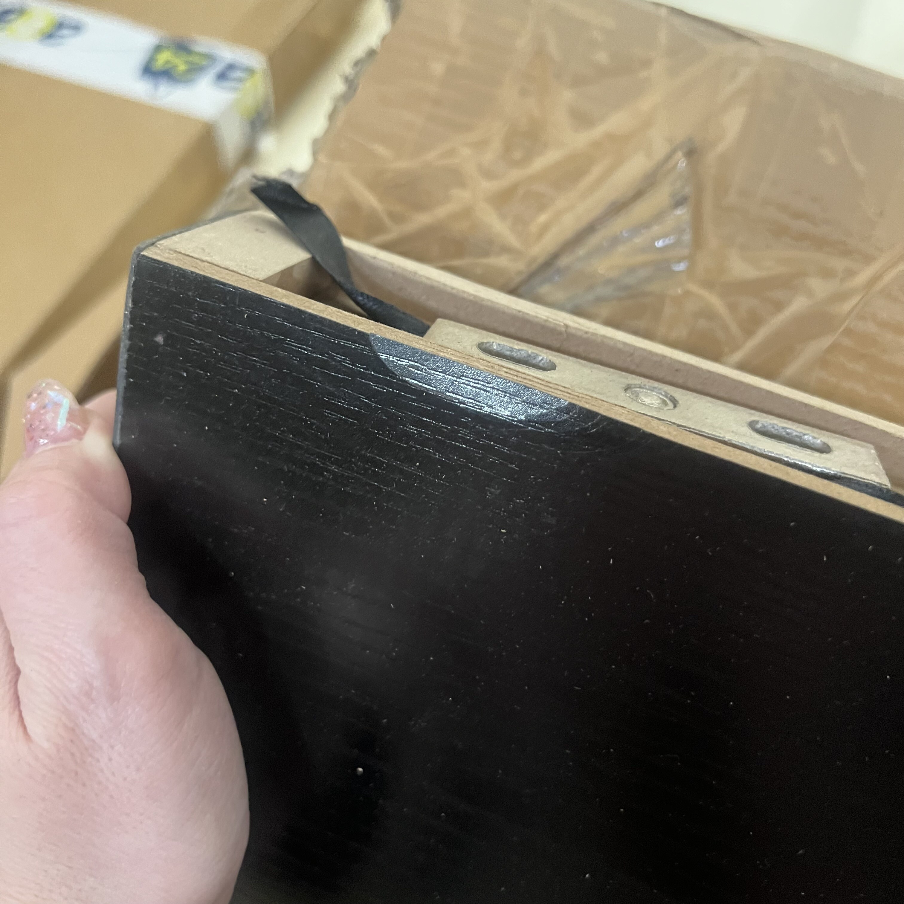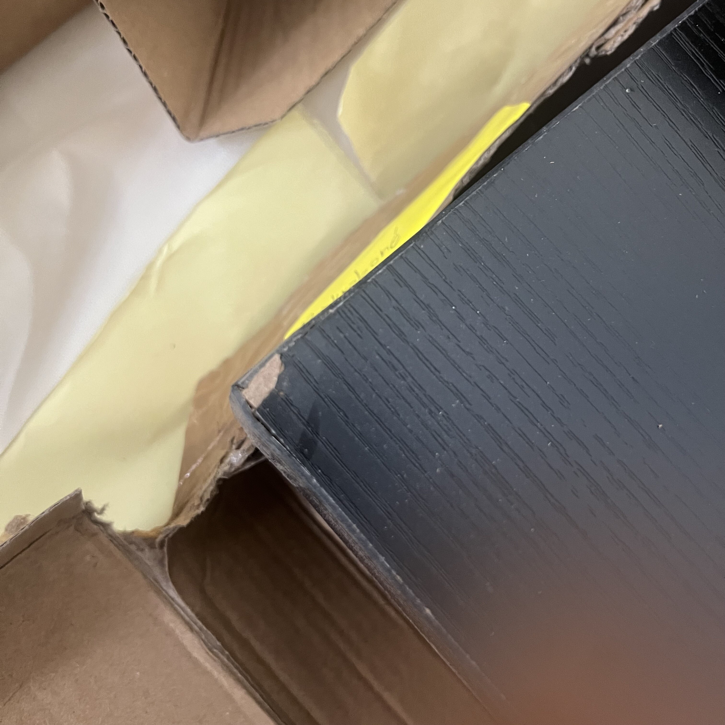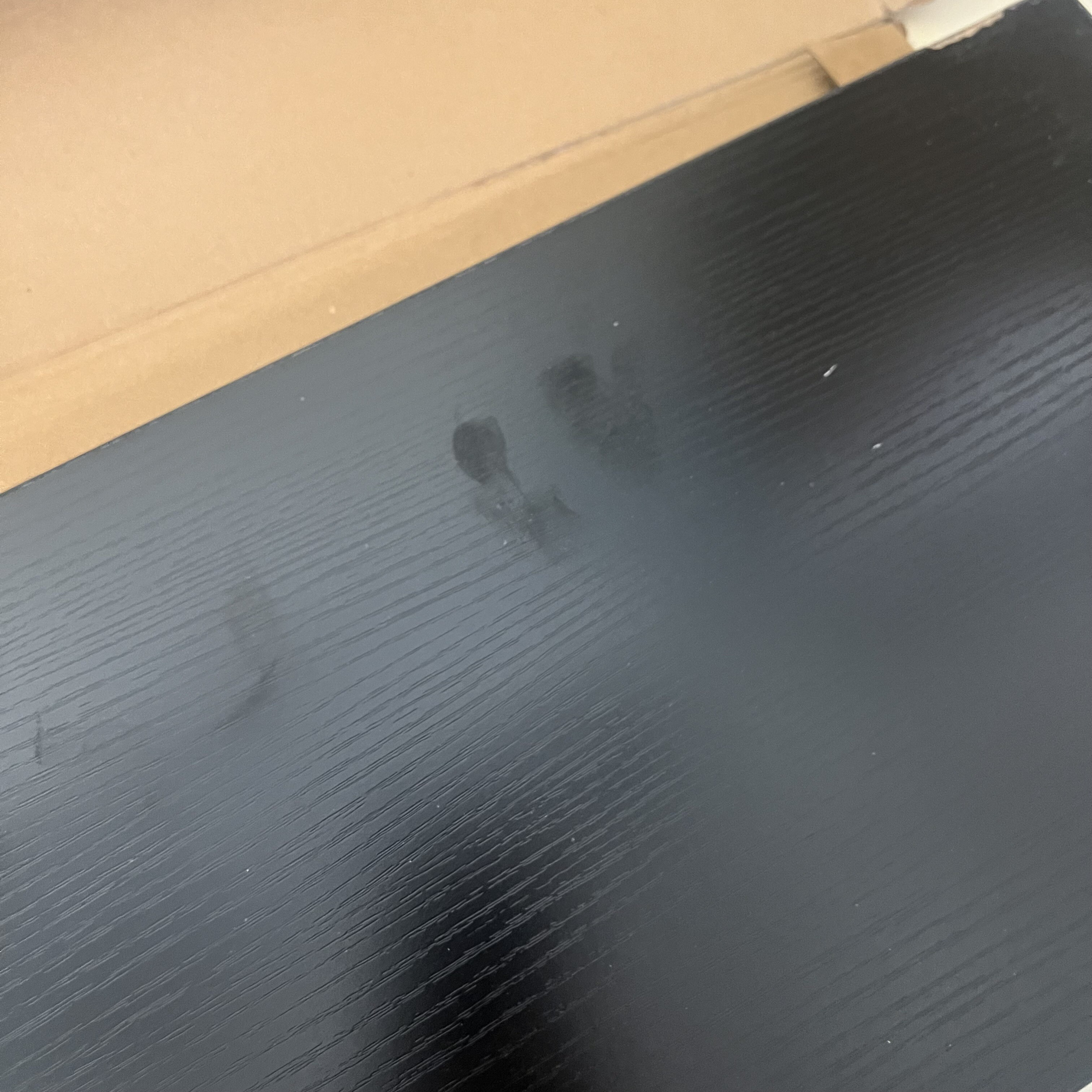 Polička je v rohoch a na hranách ulomená a je mierne špinavá.