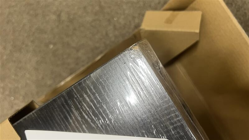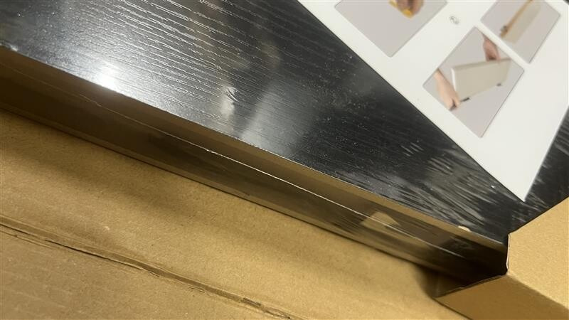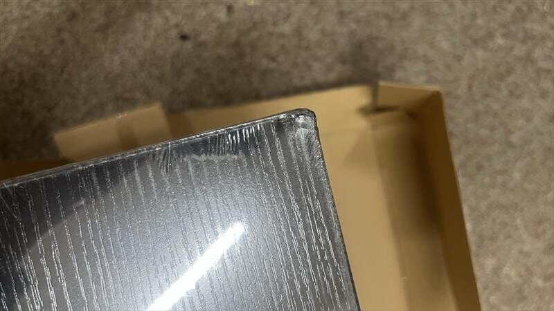 Polica má poškodené rohy a hrany v dôsledku prepravy.