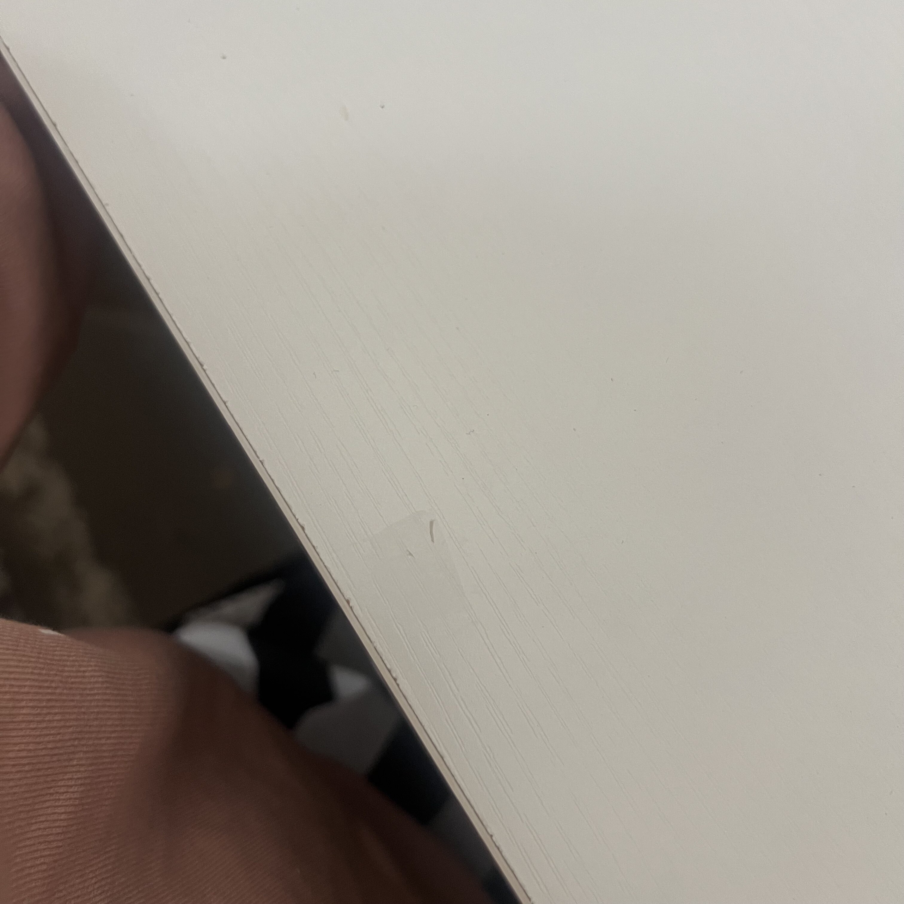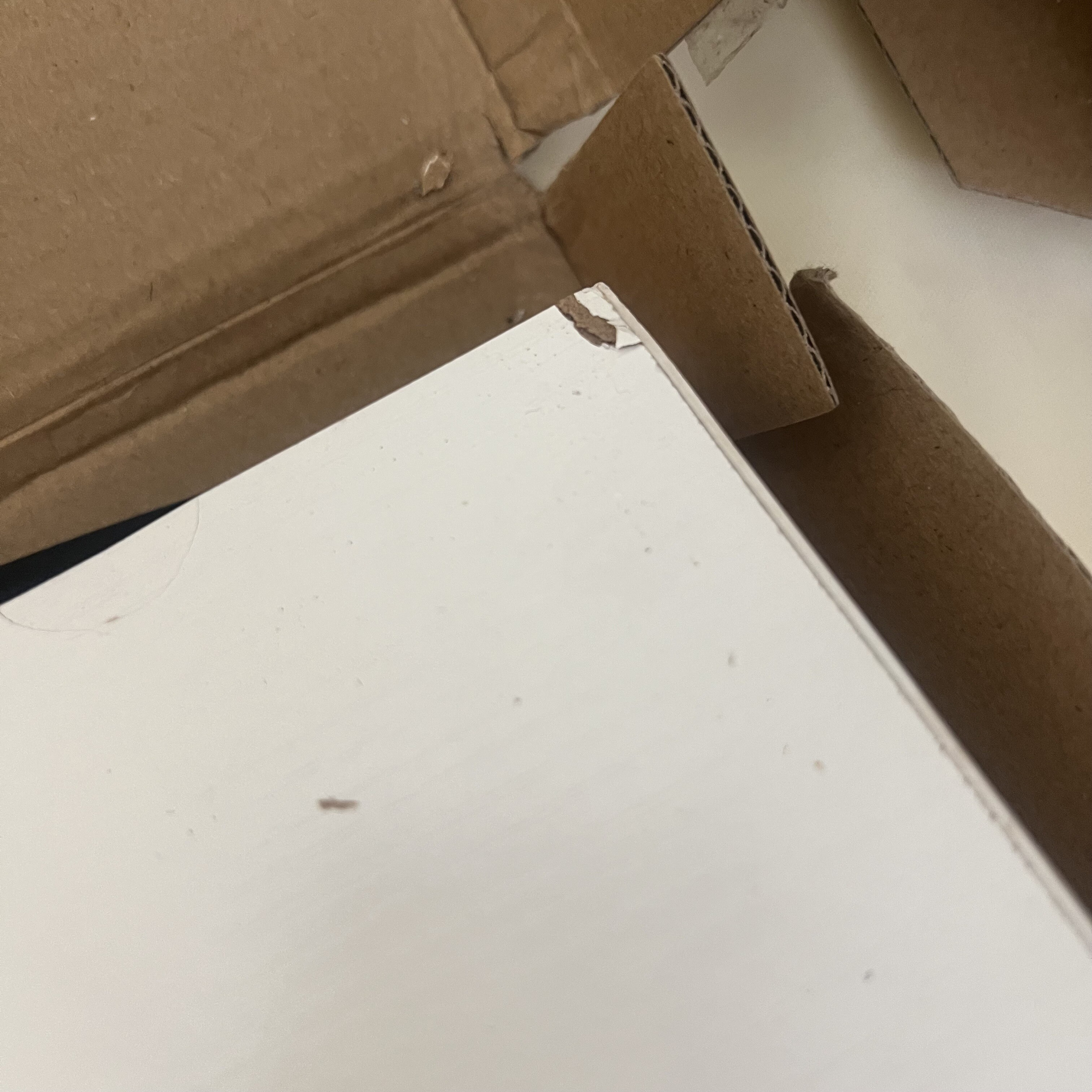 Polička je v rohoch a na hranách ulomená a je mierne špinavá.