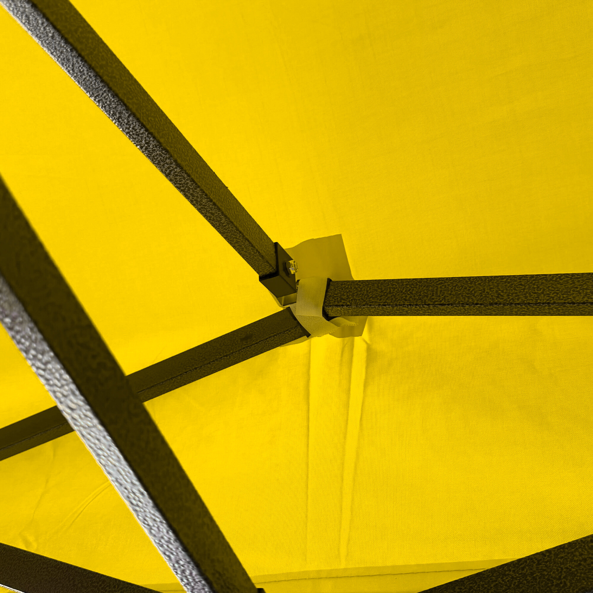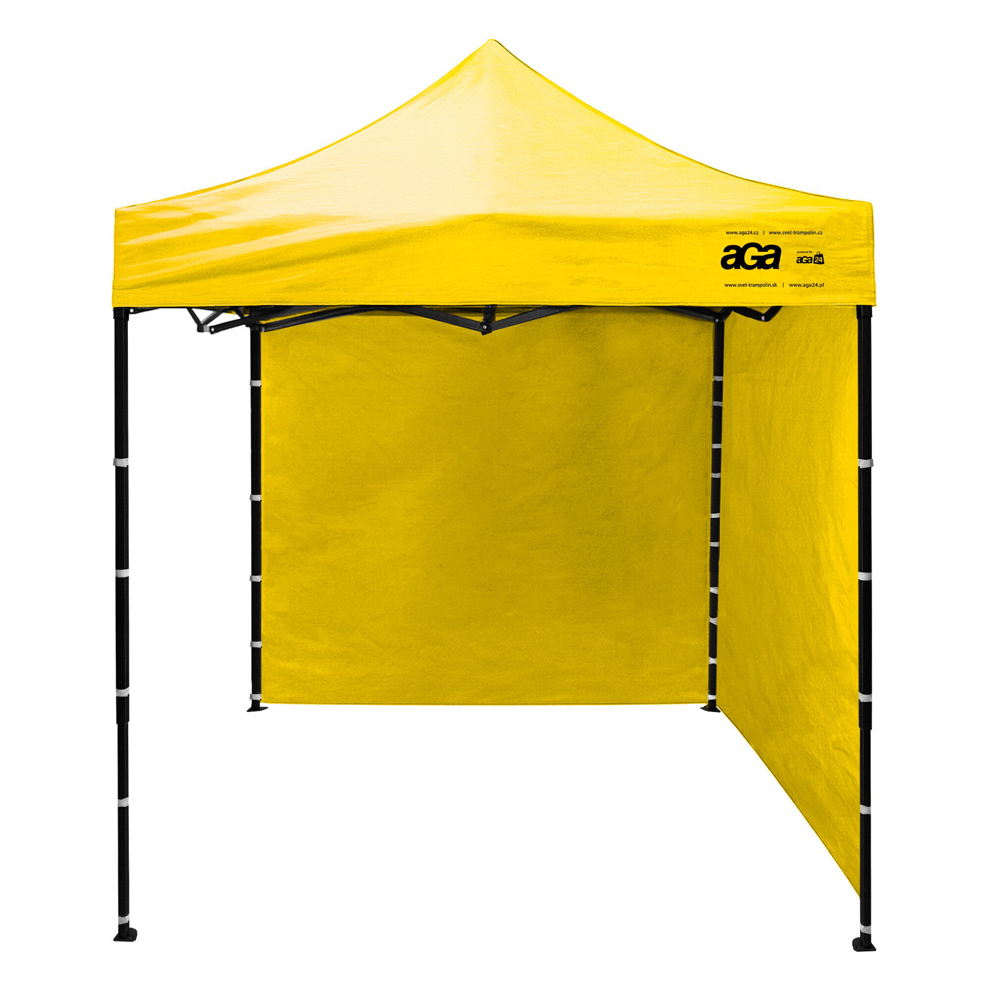 Rám stánku v čiernej farbe je vyrobený z práškovo lakovaných kovových profilov so skrutkovanými spojmi, ktoré zabezpečujú pevnosť a stabilitu. Pätky na nohách umožňujú bezpečné ukotvenie k pevnému povrchu.