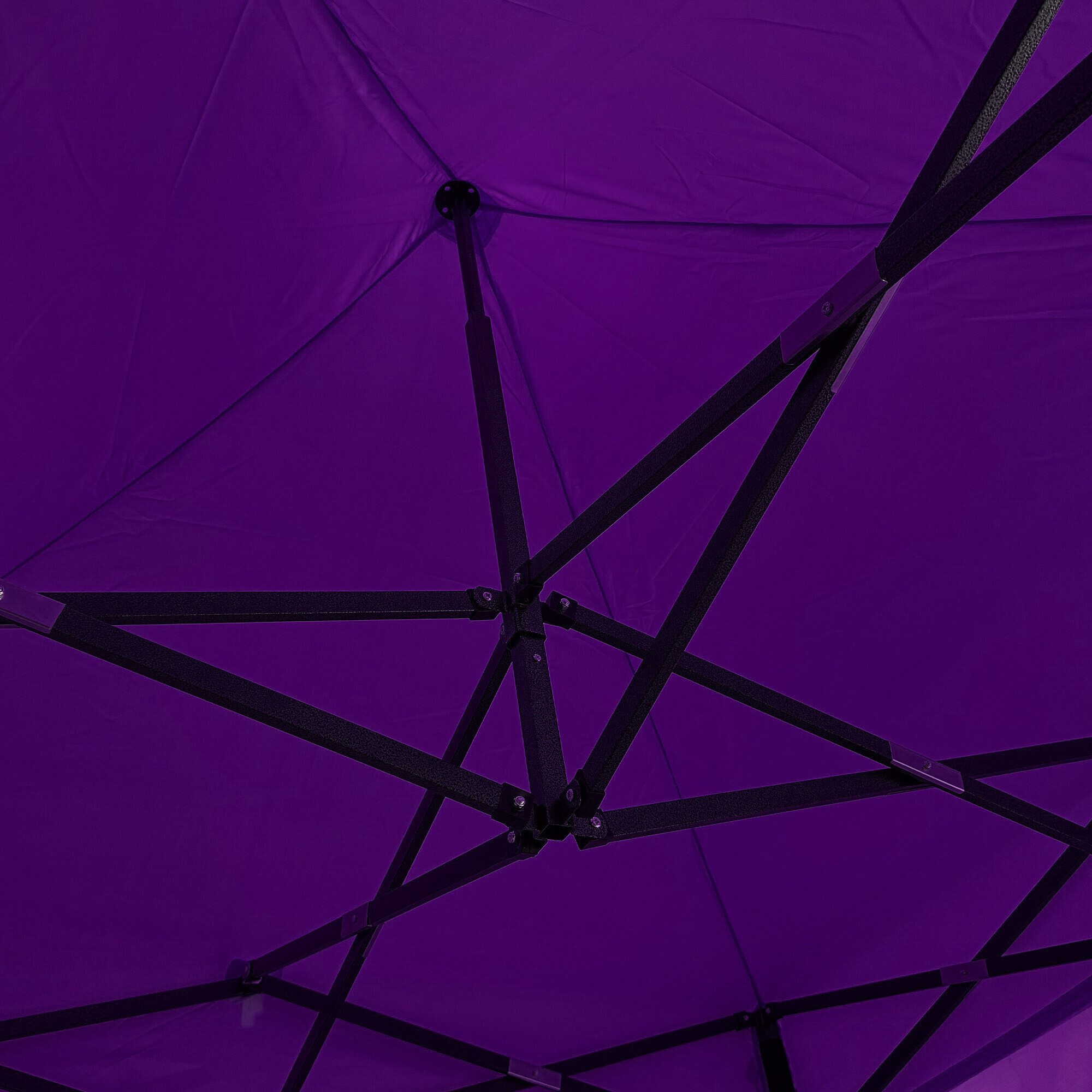 Konstrukciu tvorí oceľový rám s nožnicovým mechanizmom, ktorý je povrchovo chránený práškovým lakom proti korózii. Oproti bežným skladacím stanom má tento model skrutkované spoje, čo zvyšuje pevnosť, predlžuje životnosť a uľahčuje prípadný servis alebo výmenu dielov. Vďaka trom stupňom regulácie je možné výšku nastaviť od 213 cm až do 290 cm, takže stánok ľahko prispôsobíte konkrétnym podmienkam.