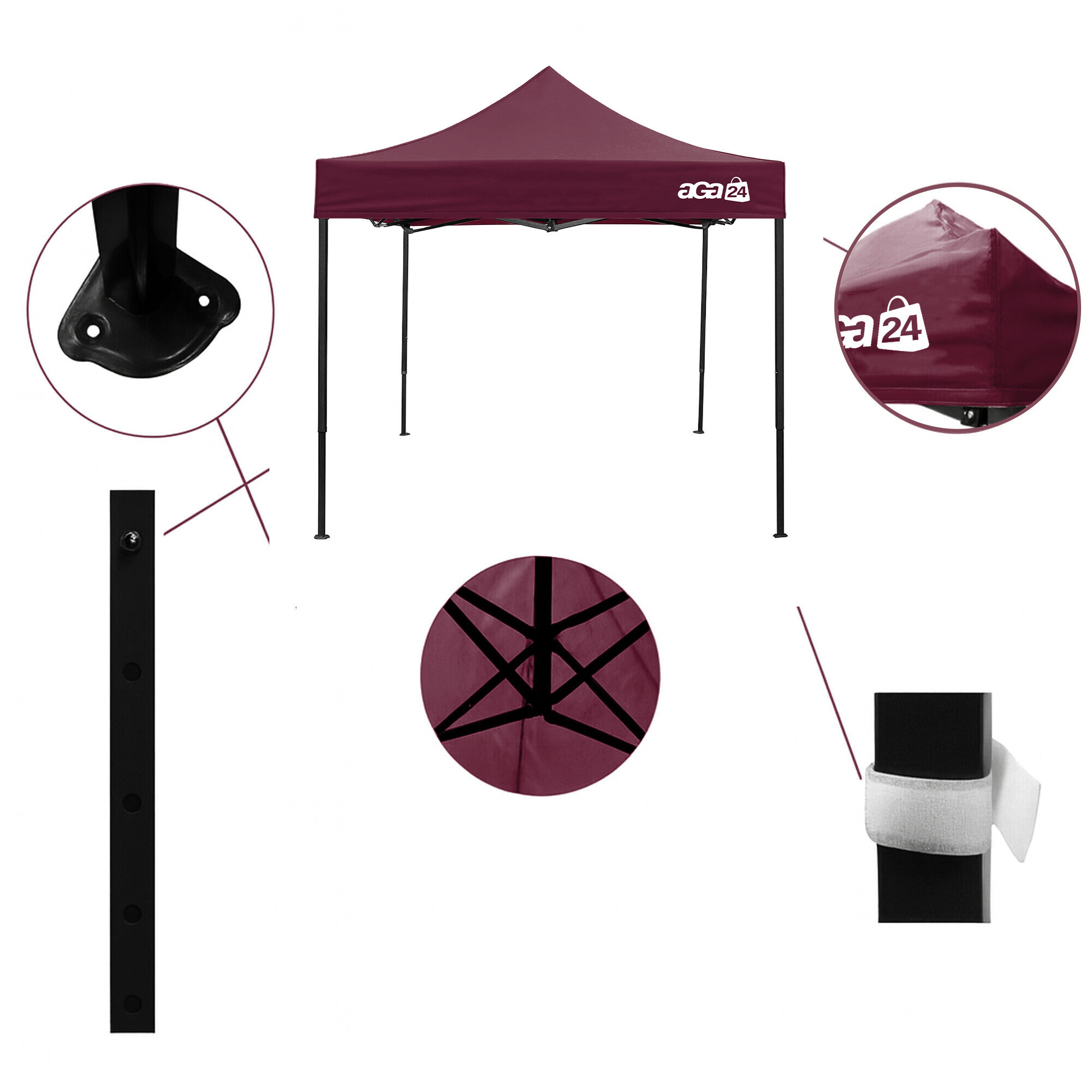 Aga Predajný stánok bez bočníc 3×3 m Tmavo červený