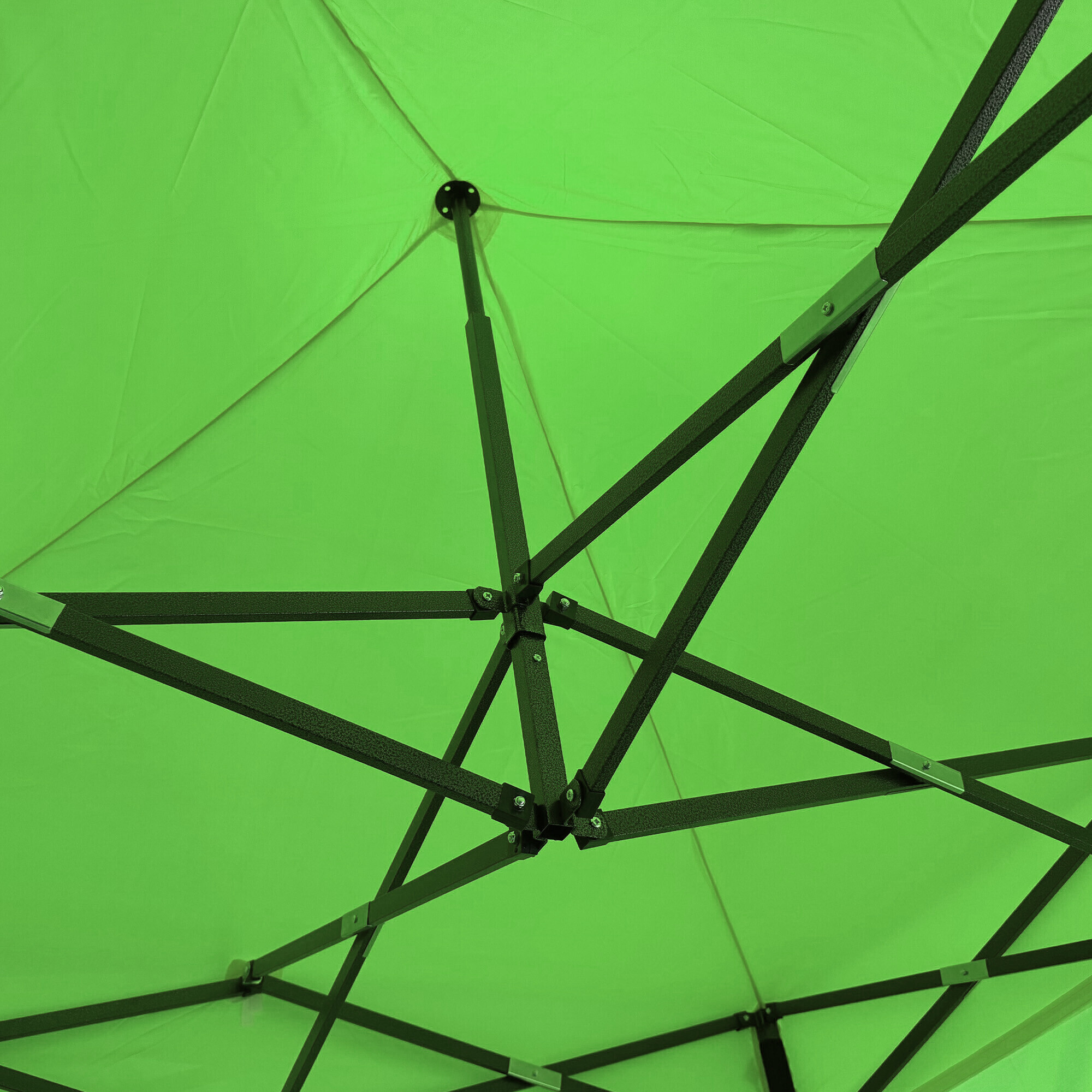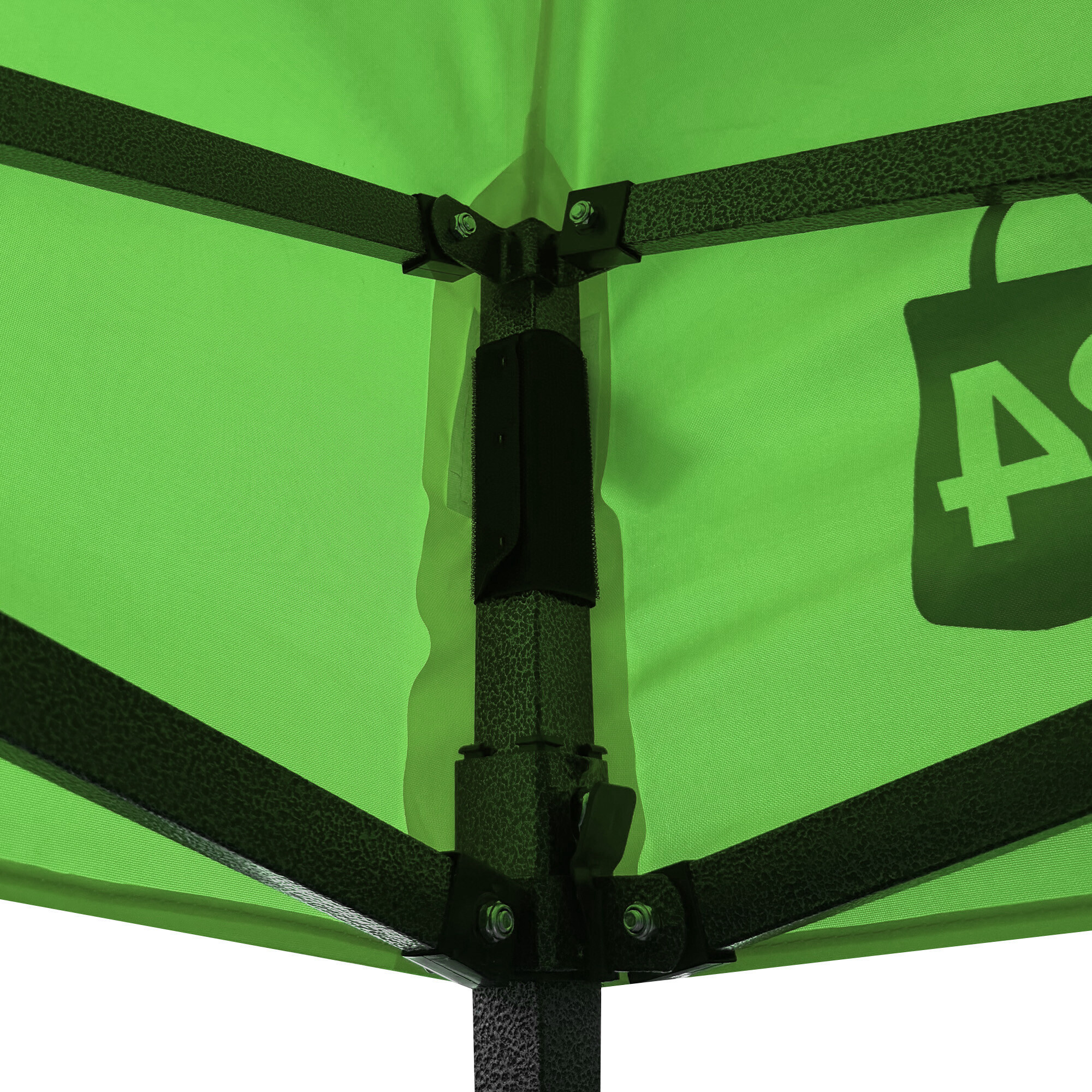 Konstrukciu tvorí oceľový rám s nožnicovým mechanizmom, ktorý je povrchovo chránený práškovým lakom proti korózii. Oproti bežným skladacím stanom má tento model skrutkované spoje, čo zvyšuje pevnosť, predlžuje životnosť a uľahčuje prípadný servis alebo výmenu dielov. Vďaka trom stupňom regulácie je možné výšku nastaviť od 213 cm až do 290 cm, takže stánok ľahko prispôsobíte konkrétnym podmienkam.