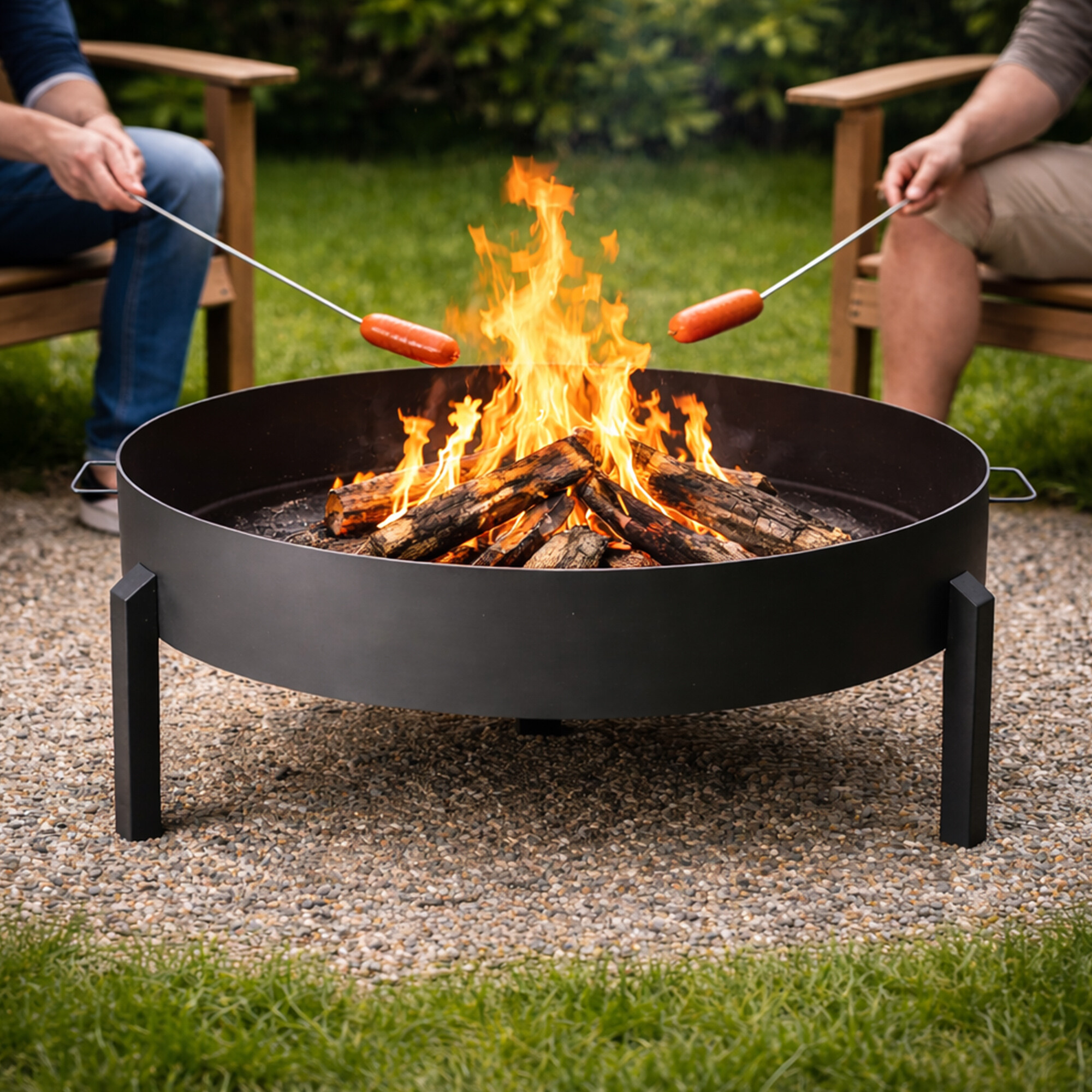 Doprajte si skutočný zážitok z otvoreného ohňa s okrúhlym prenosným ohniskom s priemerom 80 cm. Toto veľké záhradné ohnisko ponúka dostatok priestoru pre intenzívny oheň aj pohodlné posedenie s rodinou alebo priateľmi.