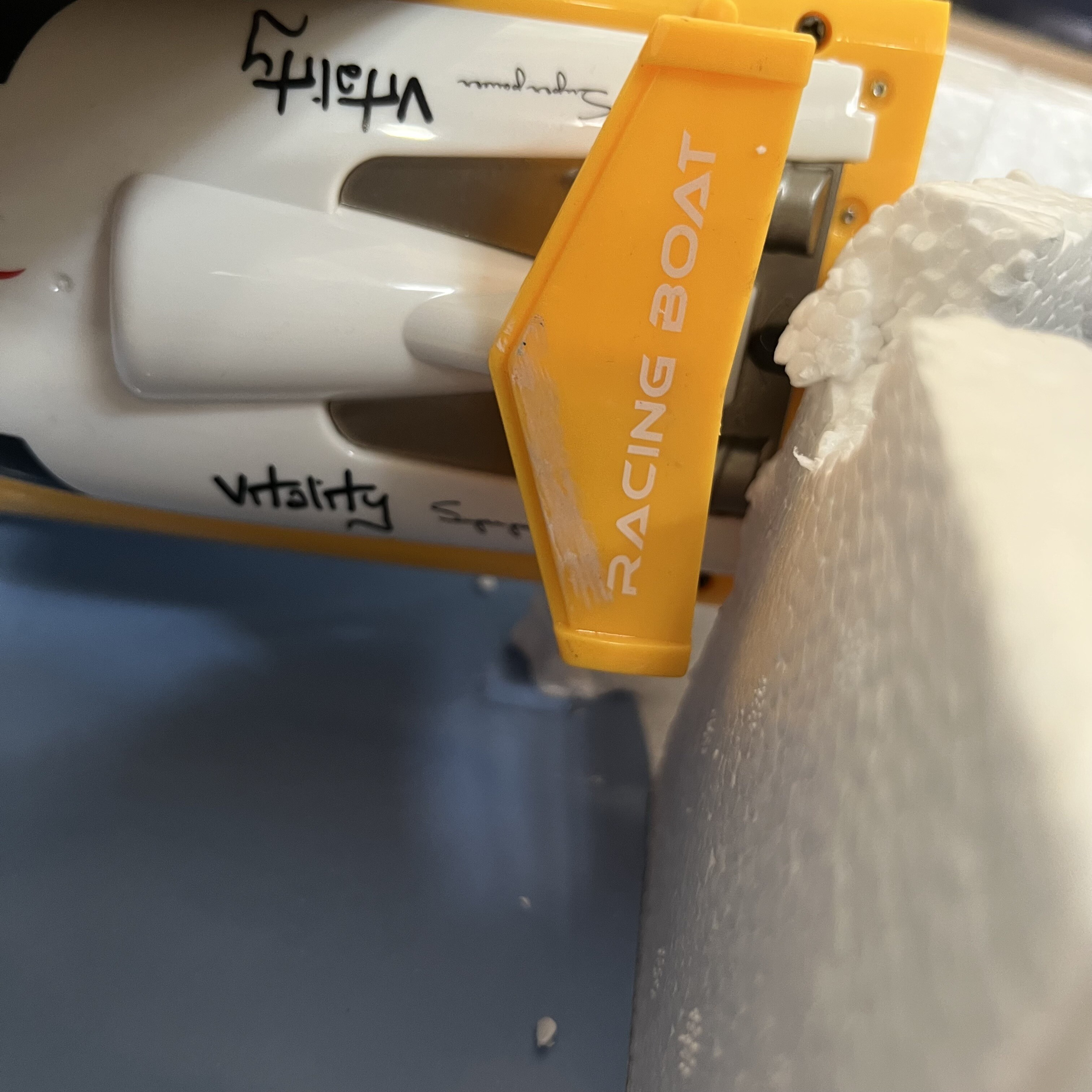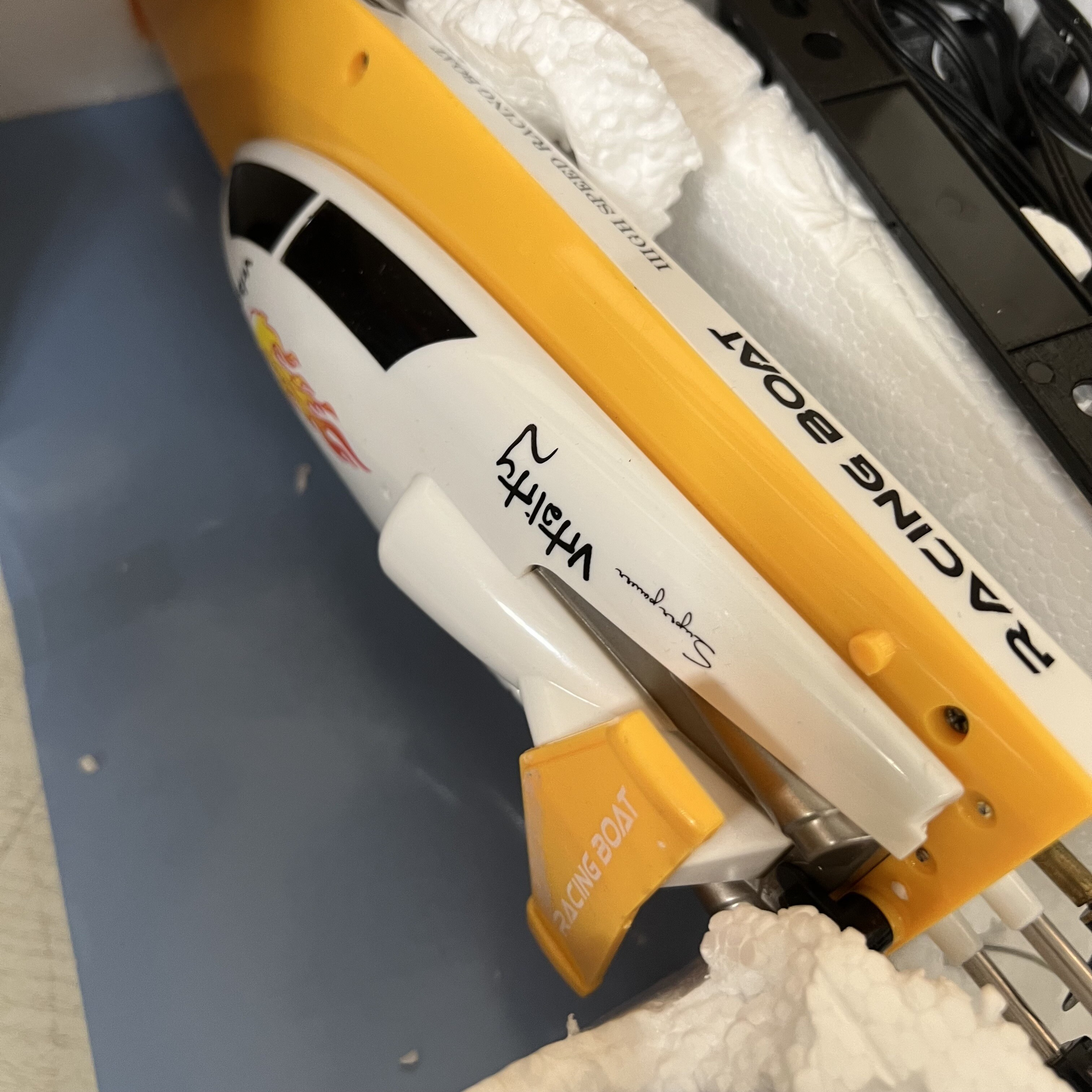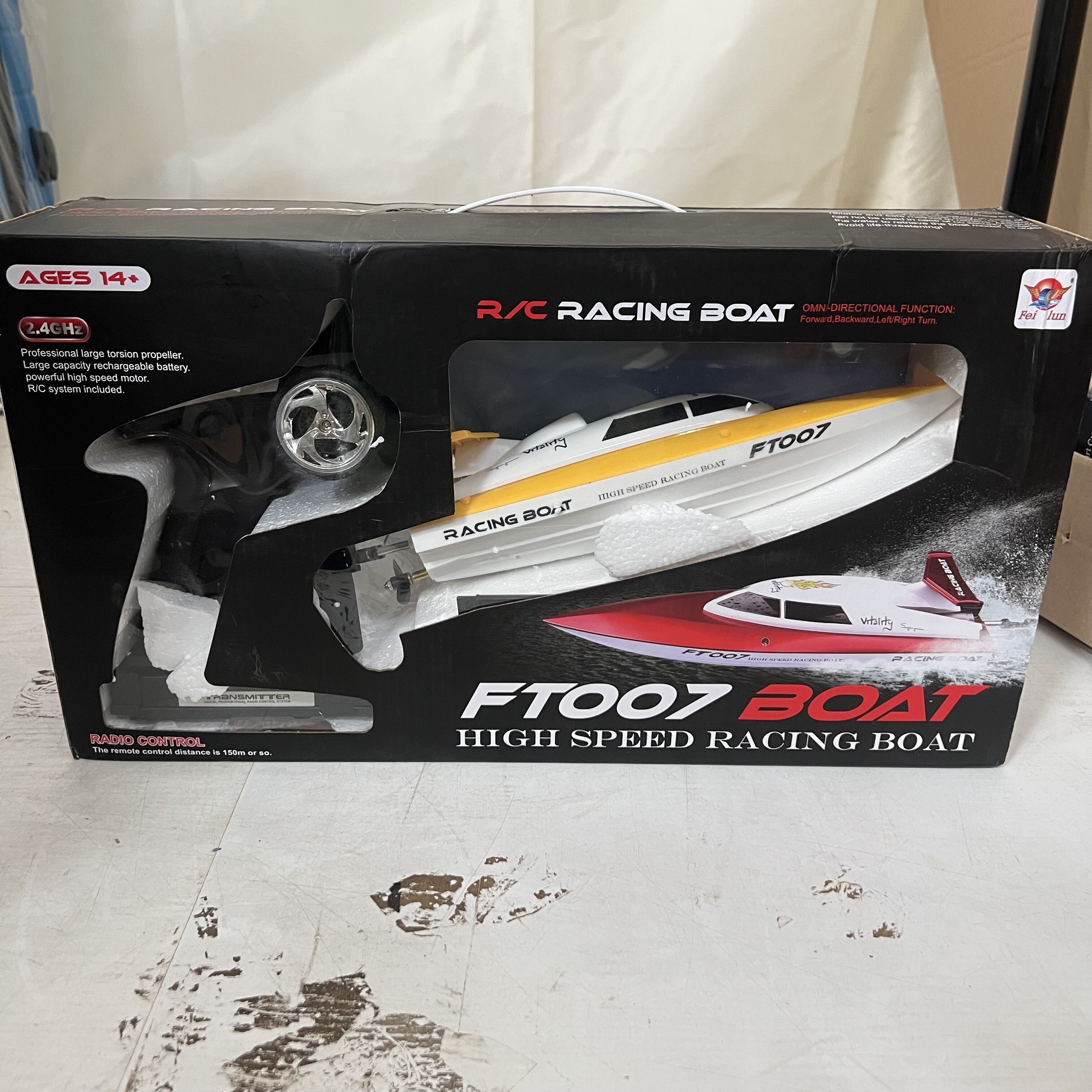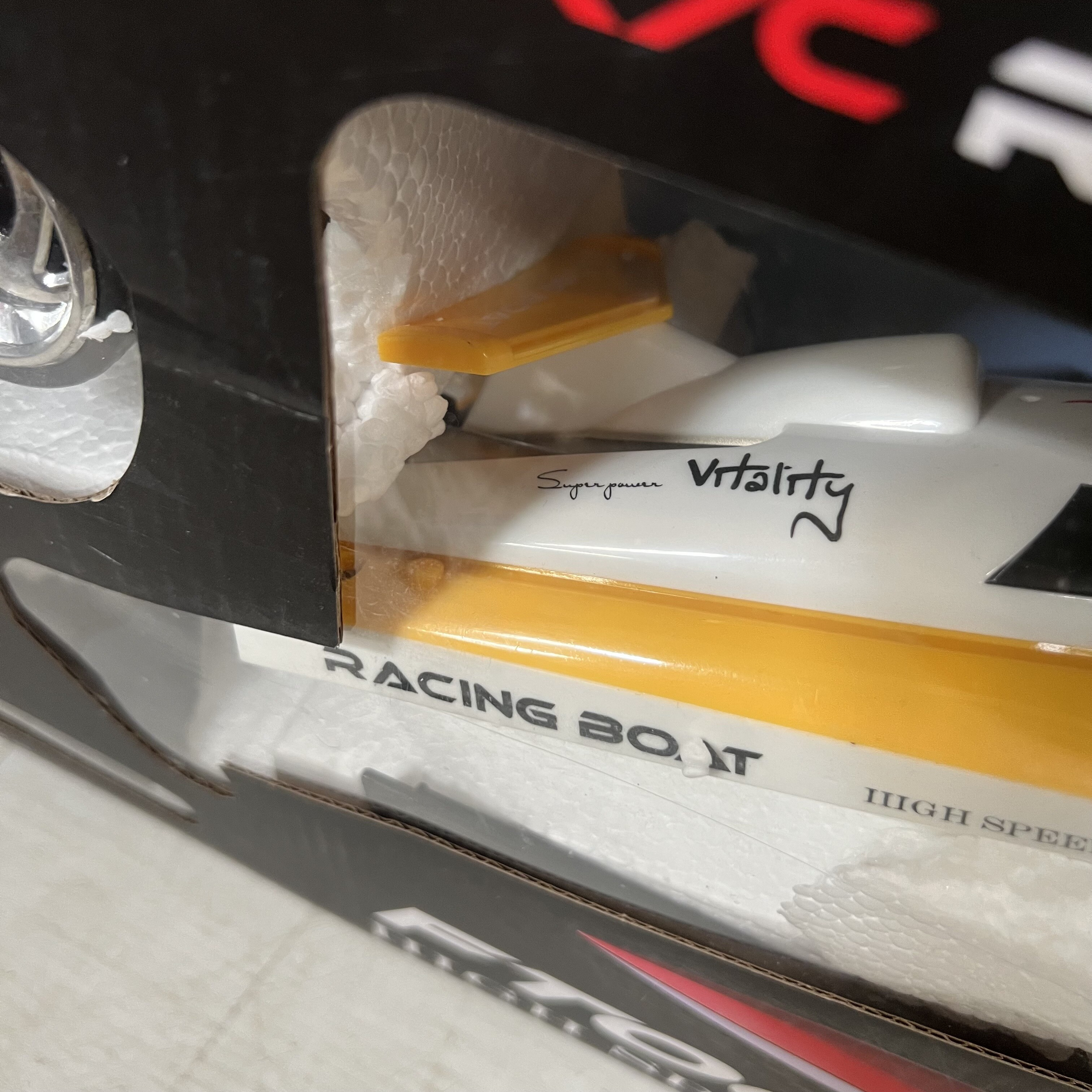 Motorový čln je vyrobený z odolných materiálov s kovovými prvkami v prevodovke. Loď je riadená dvojkanálovým, plne proporcionálnym vysielačom na frekvencii 2,4Ghz, takže nebude problém usporiadať preteky! So silným motorom čln prejde až 5,5m za sekundu. Okrem toho má rádio akceleračný a otočný trimér, ktorý je v tejto triede nezvyčajný.
