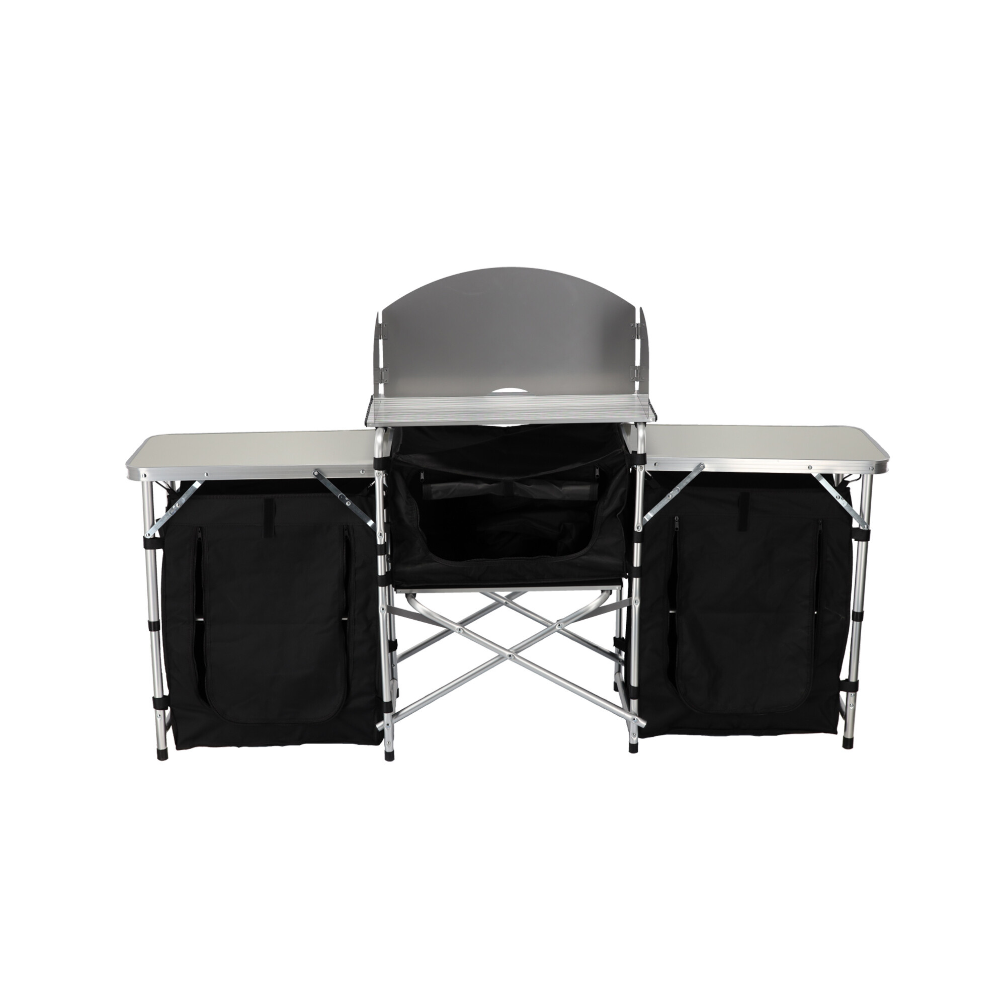 Stolík je vybavený veľkým trojdielnym organizérom na zips, ktorý je súčasťou balenia. Tento organizér je ideálny na ukladanie kuchynských potrieb, jedla, alebo akýchkoľvek ďalších predmetov, ktoré potrebujete mať pri kempovaní po ruke. Organizér je ľahko prístupný a pomáha udržať veci organizované a ľahko dostupné.
