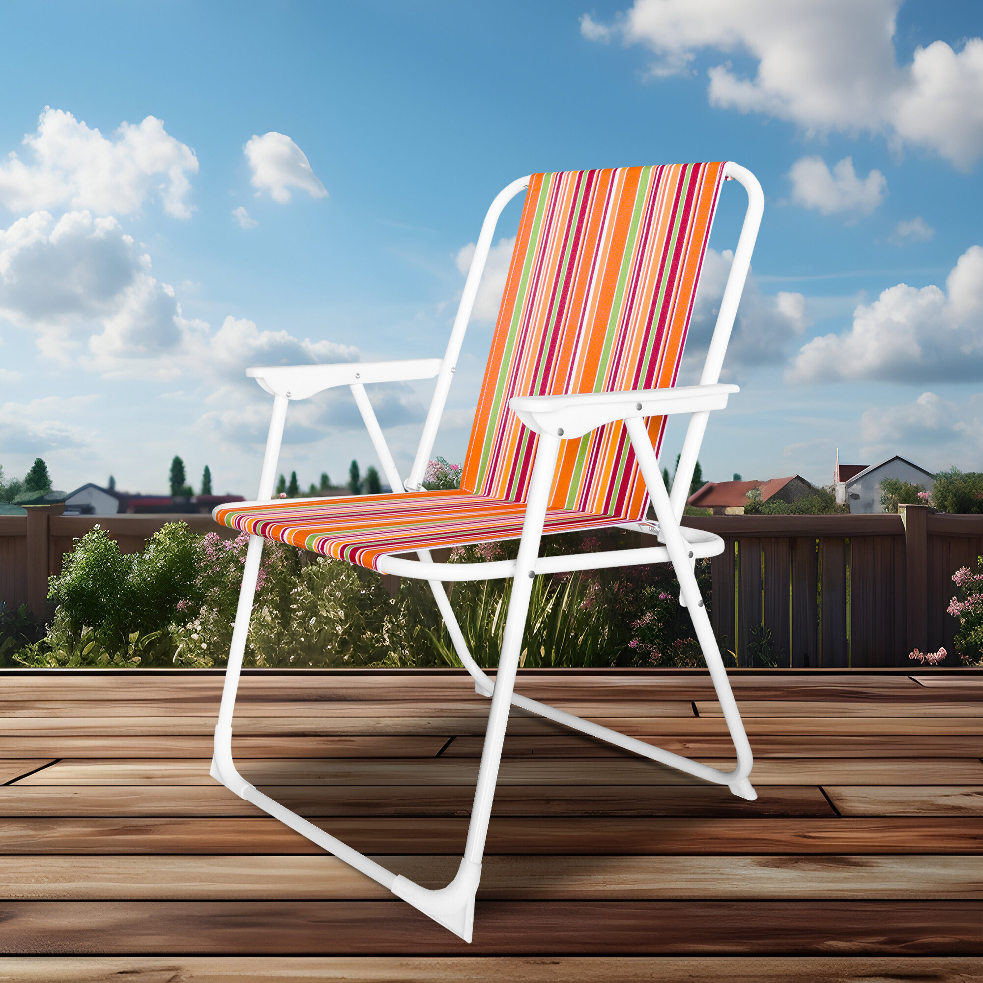 Skladacie záhradné kreslo s pohodlnými podrúčkami, ideálne na kempovanie, ale svoje využitie si iste nájde aj u rybárov, modelárov, chatárov a chalupárov.