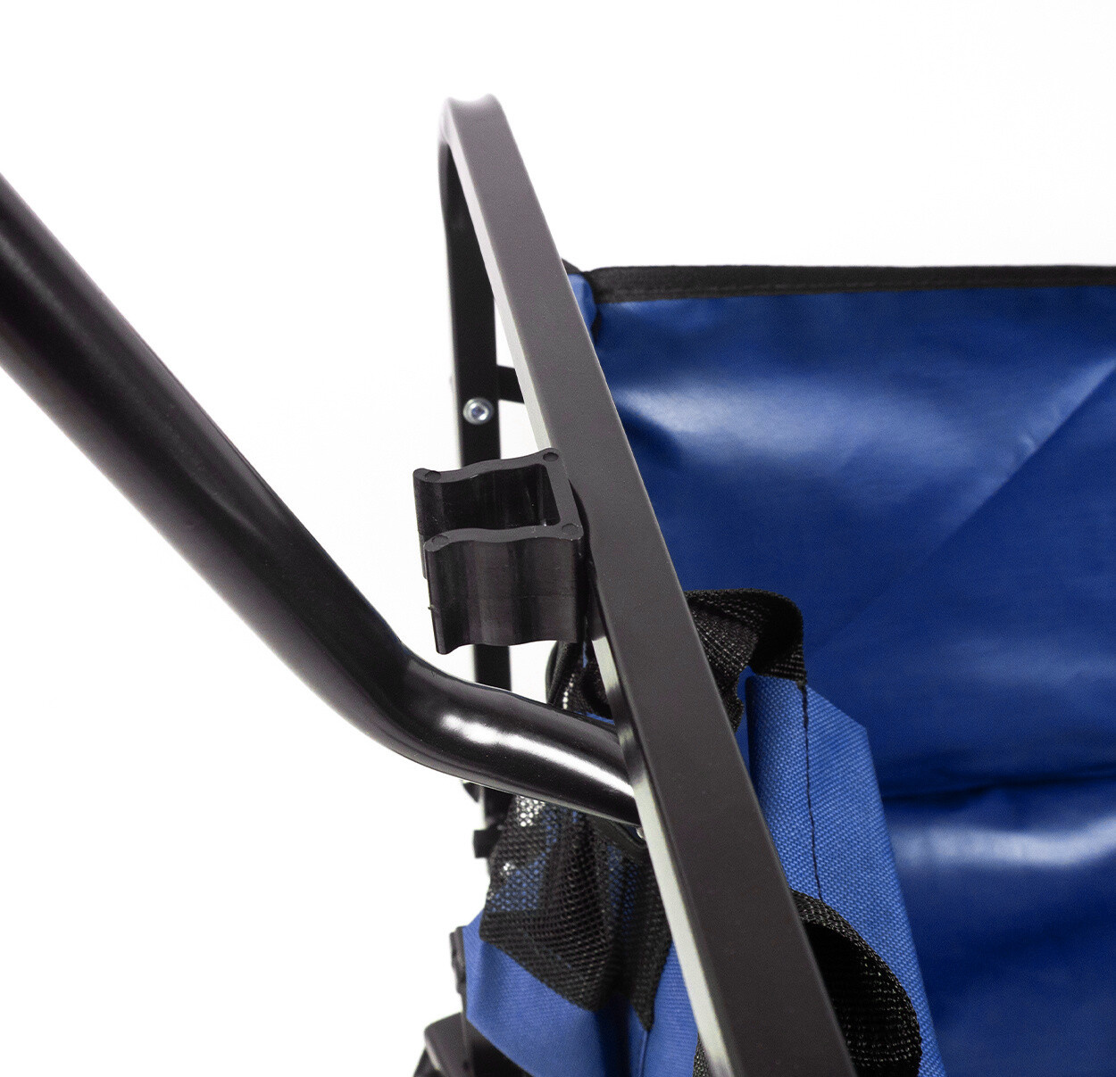 Vozík sa dá ľahko premiestňovať pomocou tyče na prednej strane. Na prednej strane vozíka nájdete aj dve sieťované vrecká na uloženie menších predmetov.