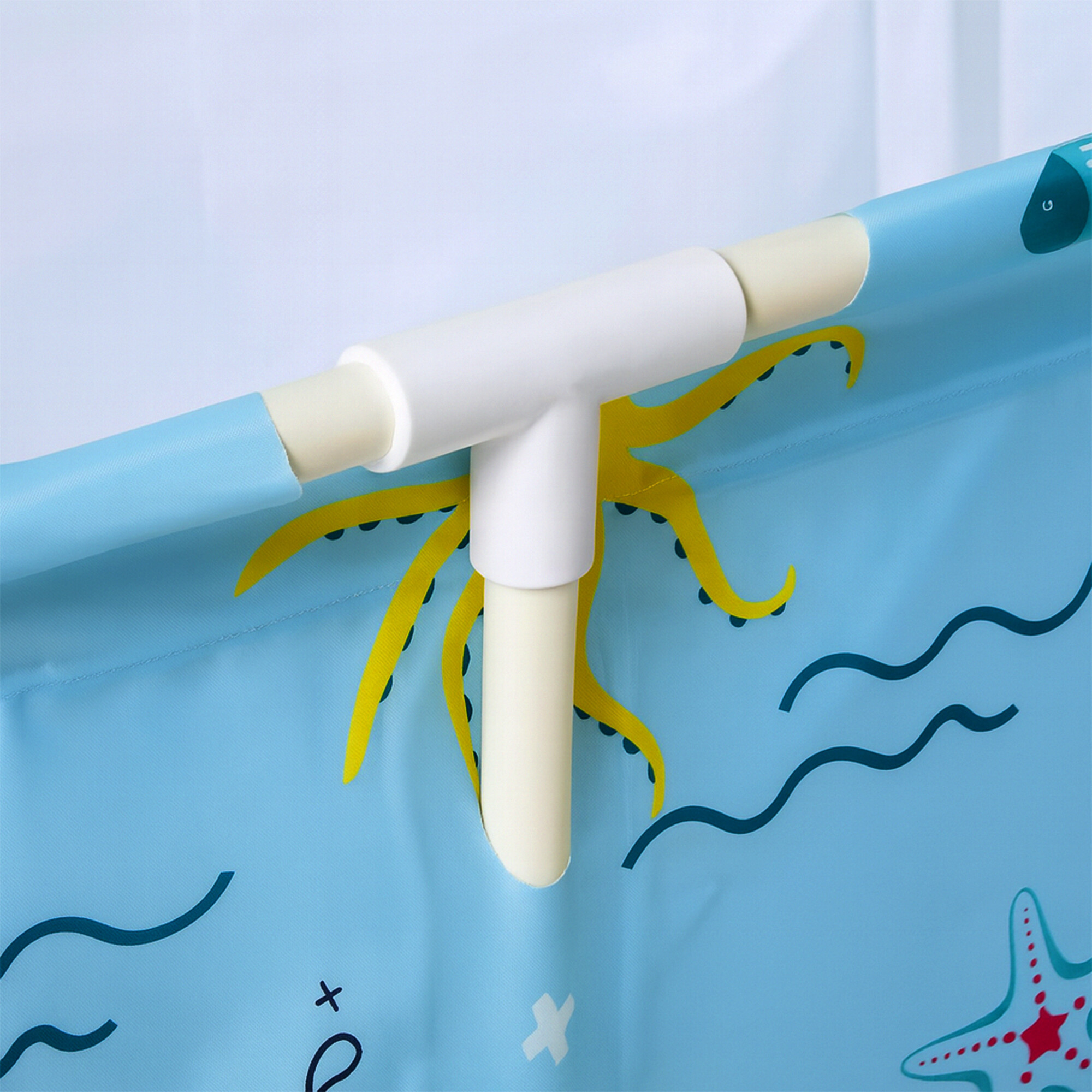 Vaňa je vyrobená z odolného PVC, ktoré je hygienické, odolné voči vode aj mechanickému poškodeniu a ľahko sa udržiava. Materiál drží tvar pri napustení a zároveň umožňuje ľahké skladanie, takže vaňa poskytuje komfort aj dlhú životnosť.