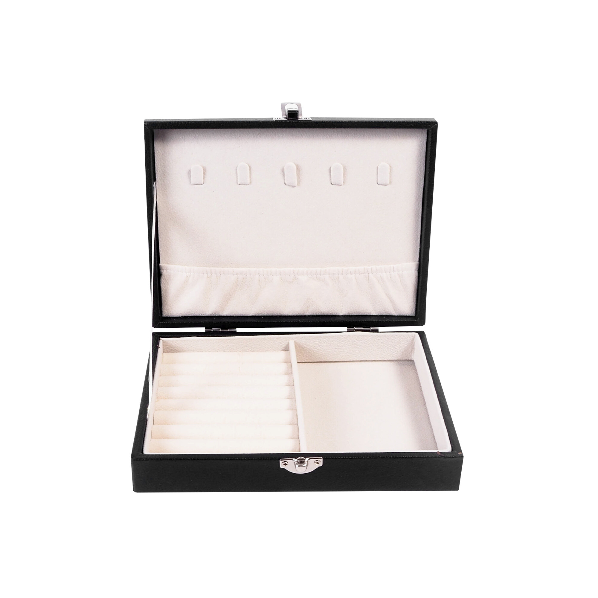 Šperkovnica je vybavená niekoľkými priehradkami, ktoré umožňujú prehľadné usporiadanie vašich prsteňov, náušníc, náramkov a ďalších drobných šperkov. Vďaka tomu budete mať vždy prehľad o tom, kde sa ktorý kúsok nachádza, a ušetríte čas pri hľadaní toho pravého doplnku pre váš outfit.
