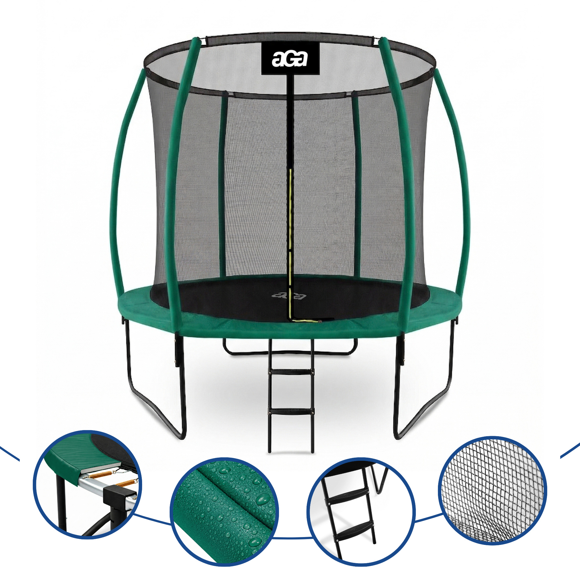 Trampolína Aga s vnútornou ochrannou sieťou bola špeciálne navrhnutá a vyrobená pre bezpečnú zábavu detí aj dospelých.