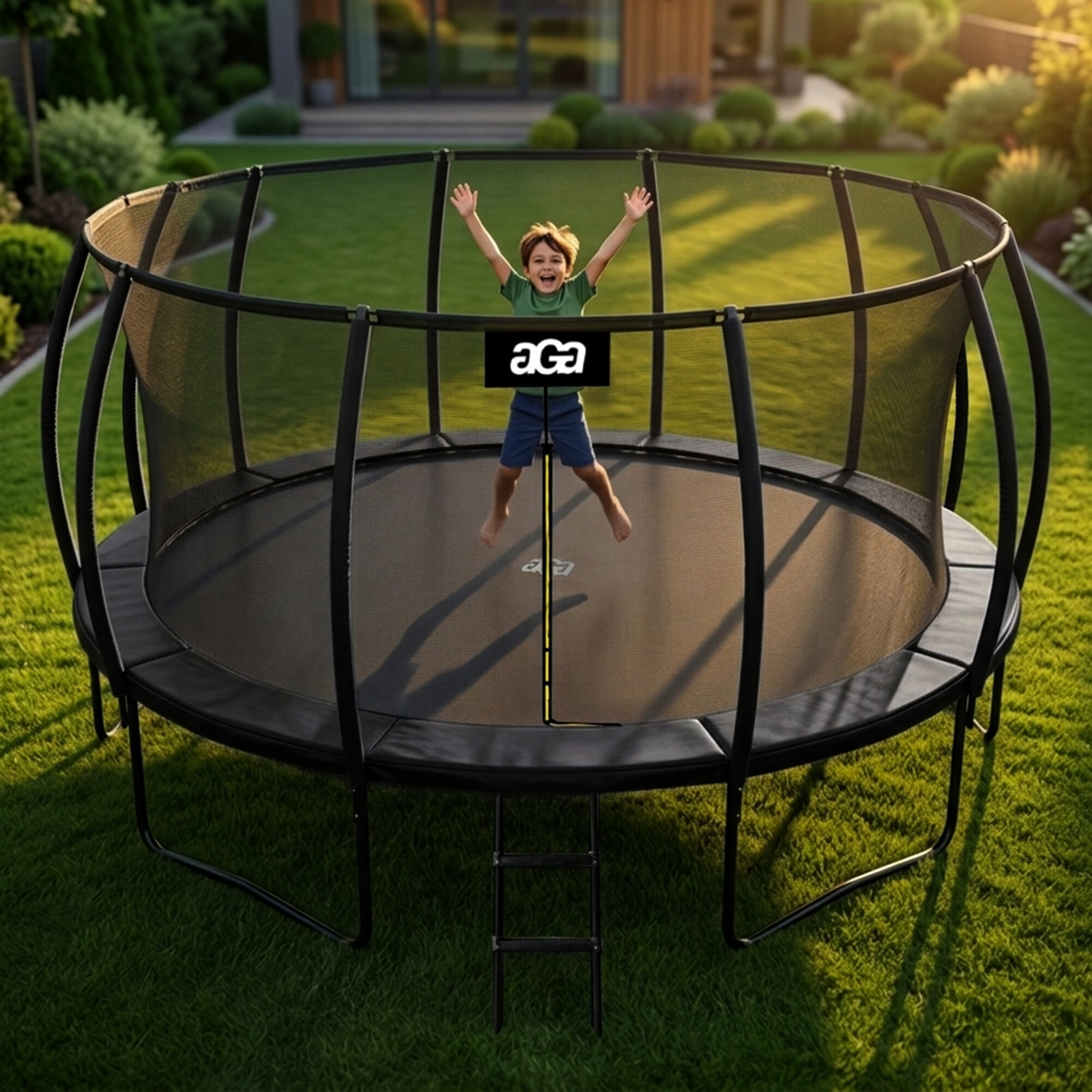 Trampolína Aga s vnútornou ochrannou sieťou bola špeciálne navrhnutá a vyrobená pre bezpečnú zábavu detí aj dospelých.