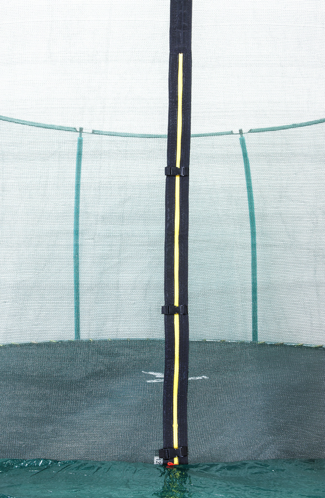 Horná ochranná sieť má vstup na zips s bezpečnostným zámkom, ktorý zabraňuje neúmyselnému rozopnutiu.