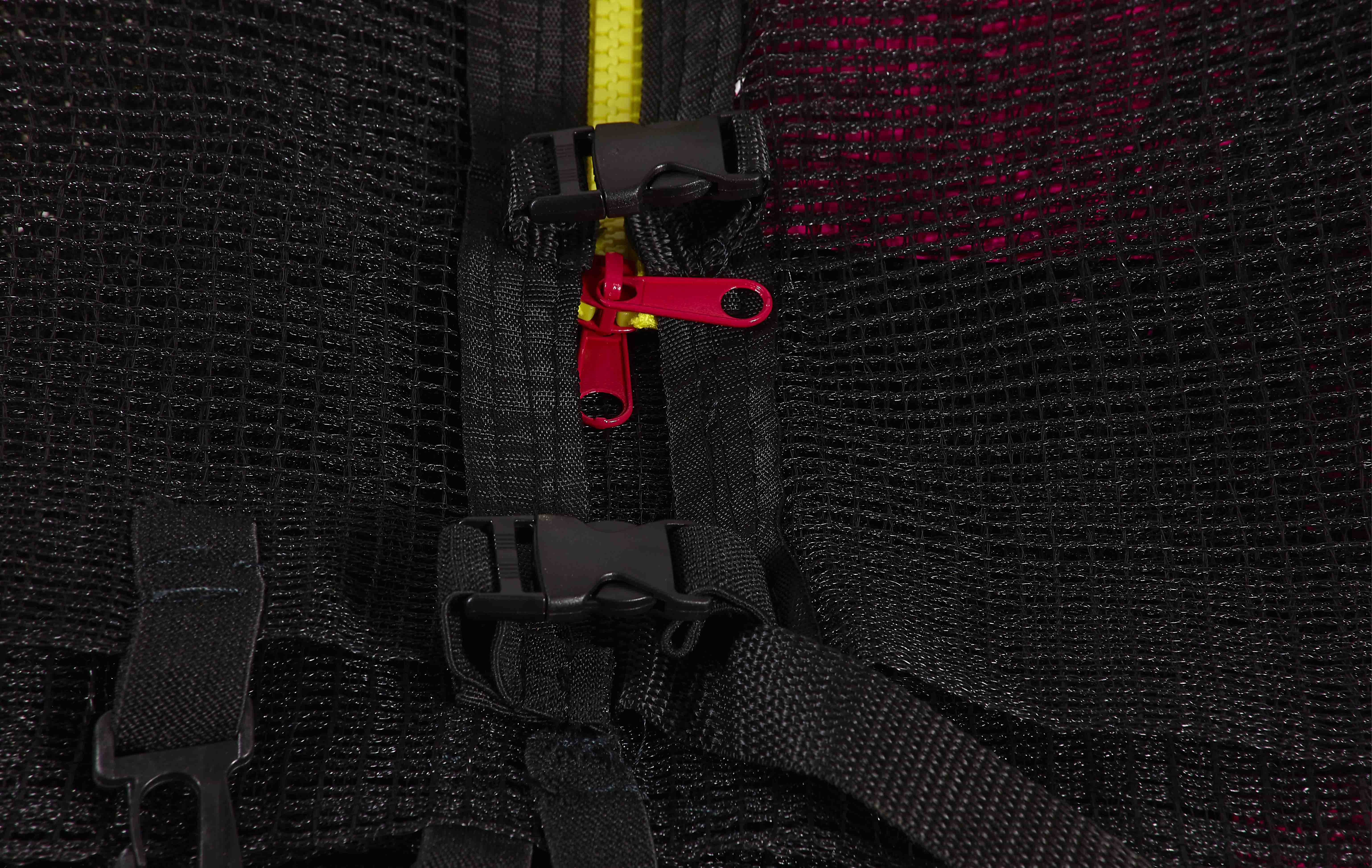 Vrchná ochranná sieť vyrobená zo superťažkého PE materiálu má vstup na zips a bezpečnostný zámok, ktorý zabraňuje neúmyselnému otvoreniu.