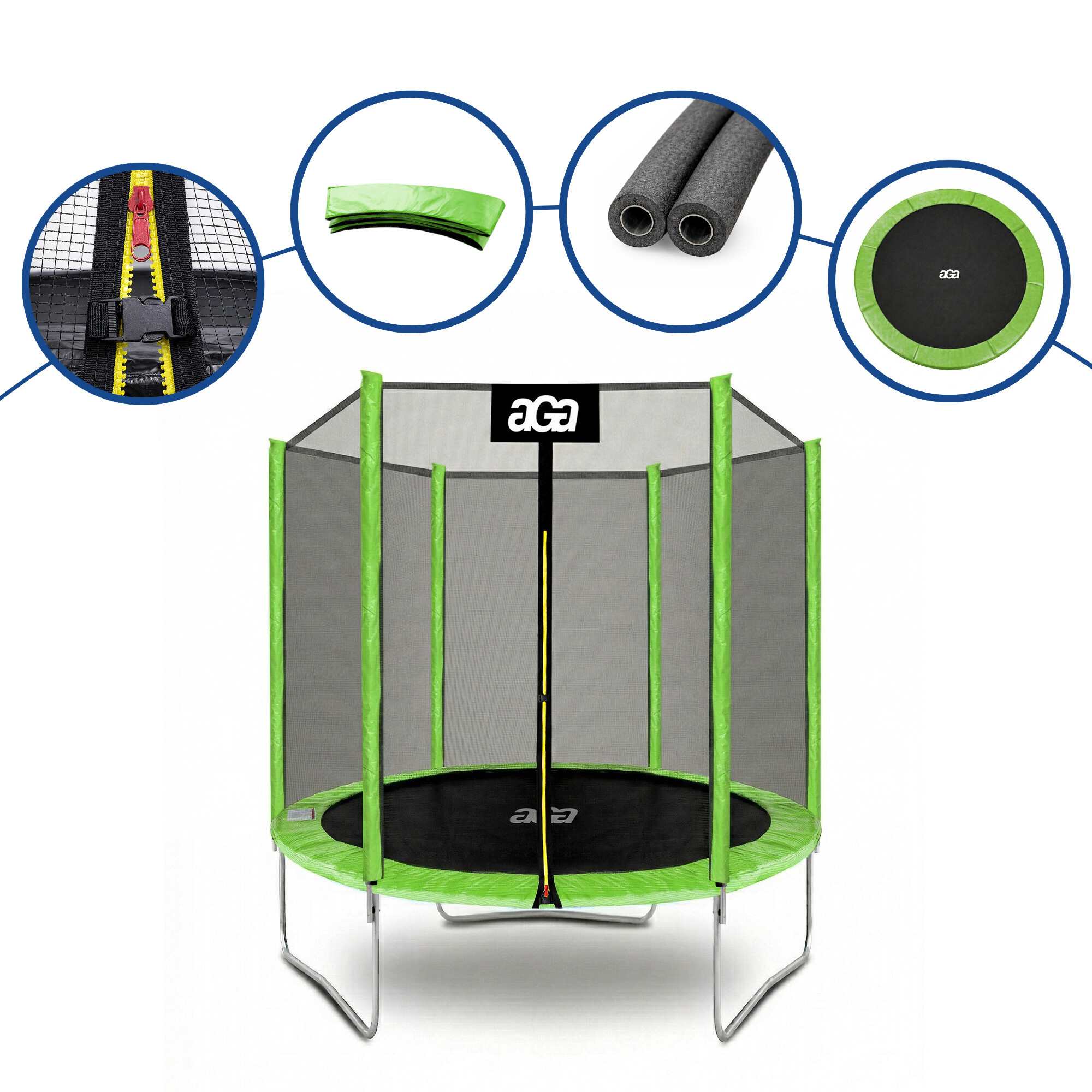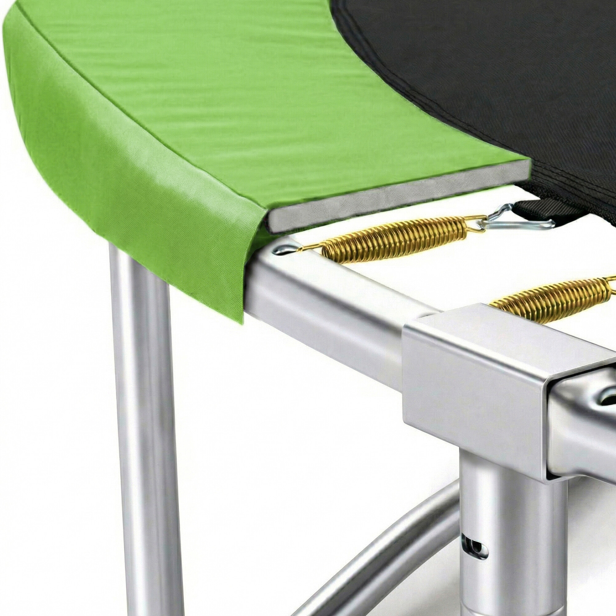 Maximálnu možnú bezpečnosť trampolíny potom zabezpečuje polstrovaný obvodový pás (kryt pružín), vyrobený z PVC, ktorý prekrýva pružiny po celom obvode trampolíny.