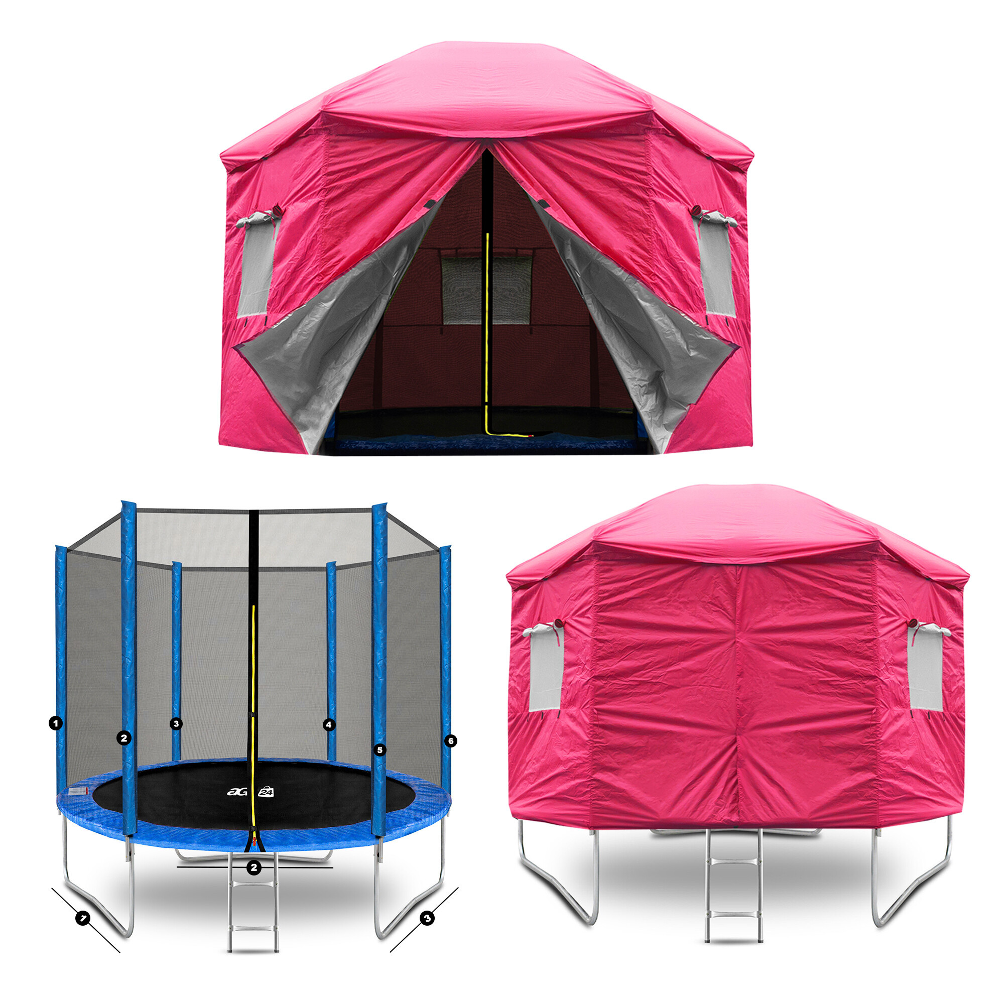 Špecifikácia stanu Aga na trampolíny o veľkosti 300, 305 cm (10 ft) Pink.