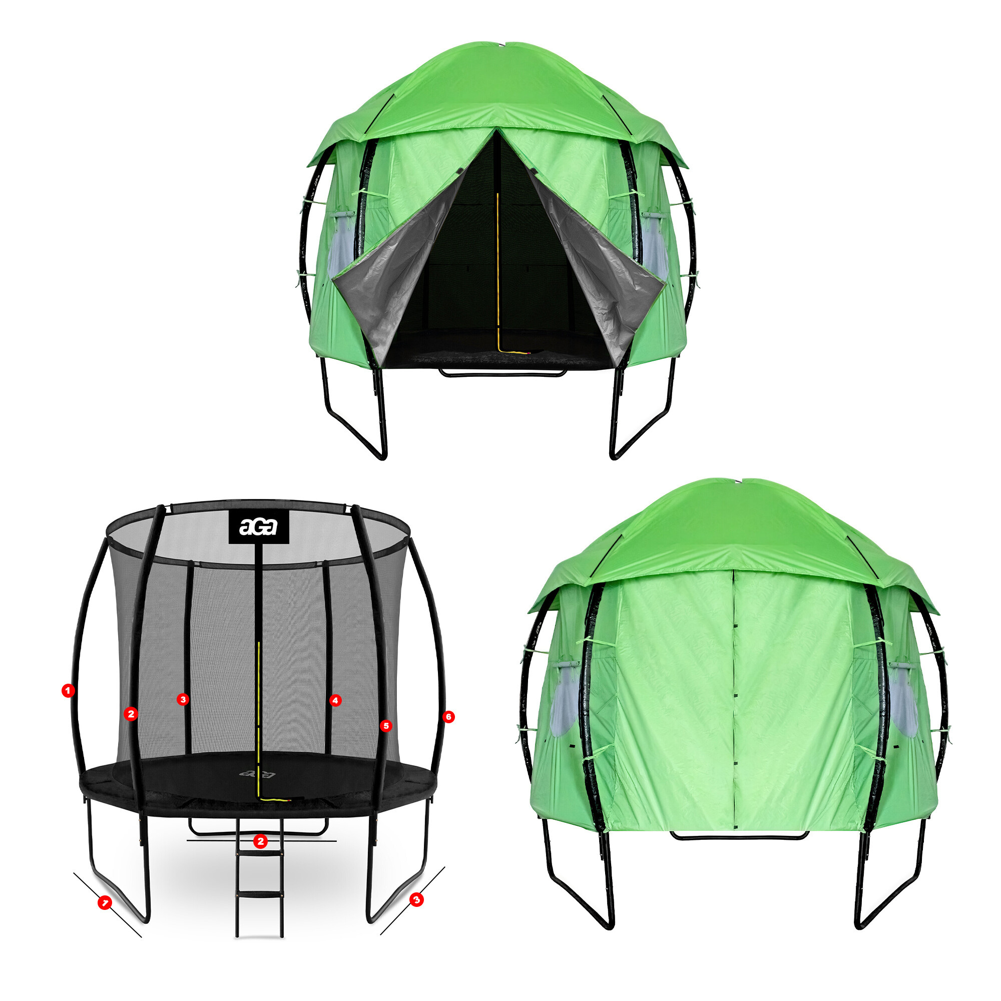 A v čase, keď trampolína nie je aktívne využívaná, pomáha stan chrániť odrazovú plochu pred znečistením a UV žiarením.