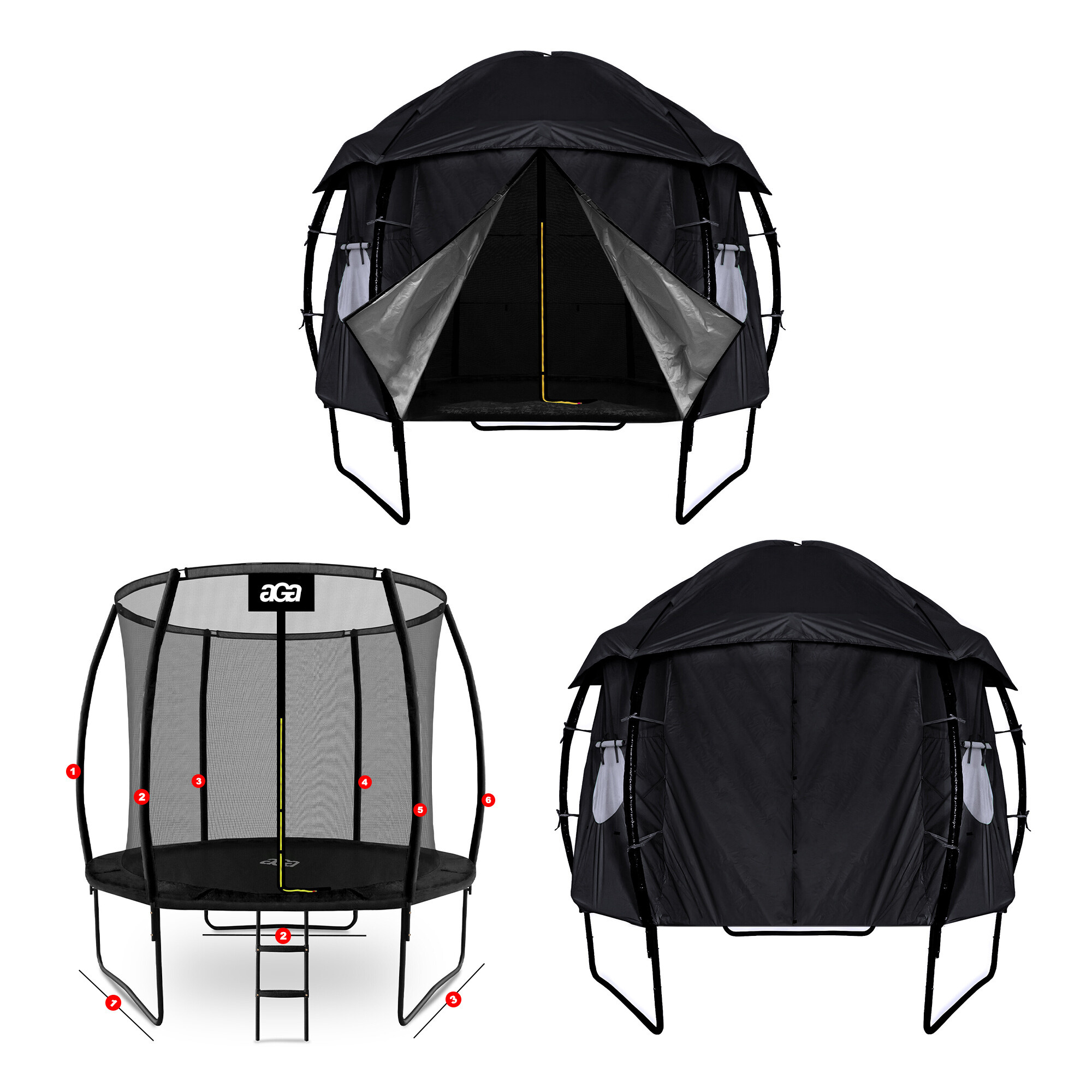 A v čase, keď trampolína nie je aktívne využívaná, pomáha stan chrániť odrazovú plochu pred znečistením a UV žiarením.