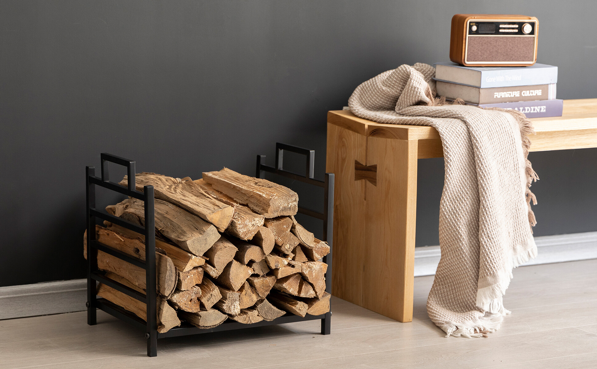Okrem úložného priestoru plní aj estetickú funkciu vďaka zaujímavému dizajnu a udržiava poriadok pri manipulácii s drevom.