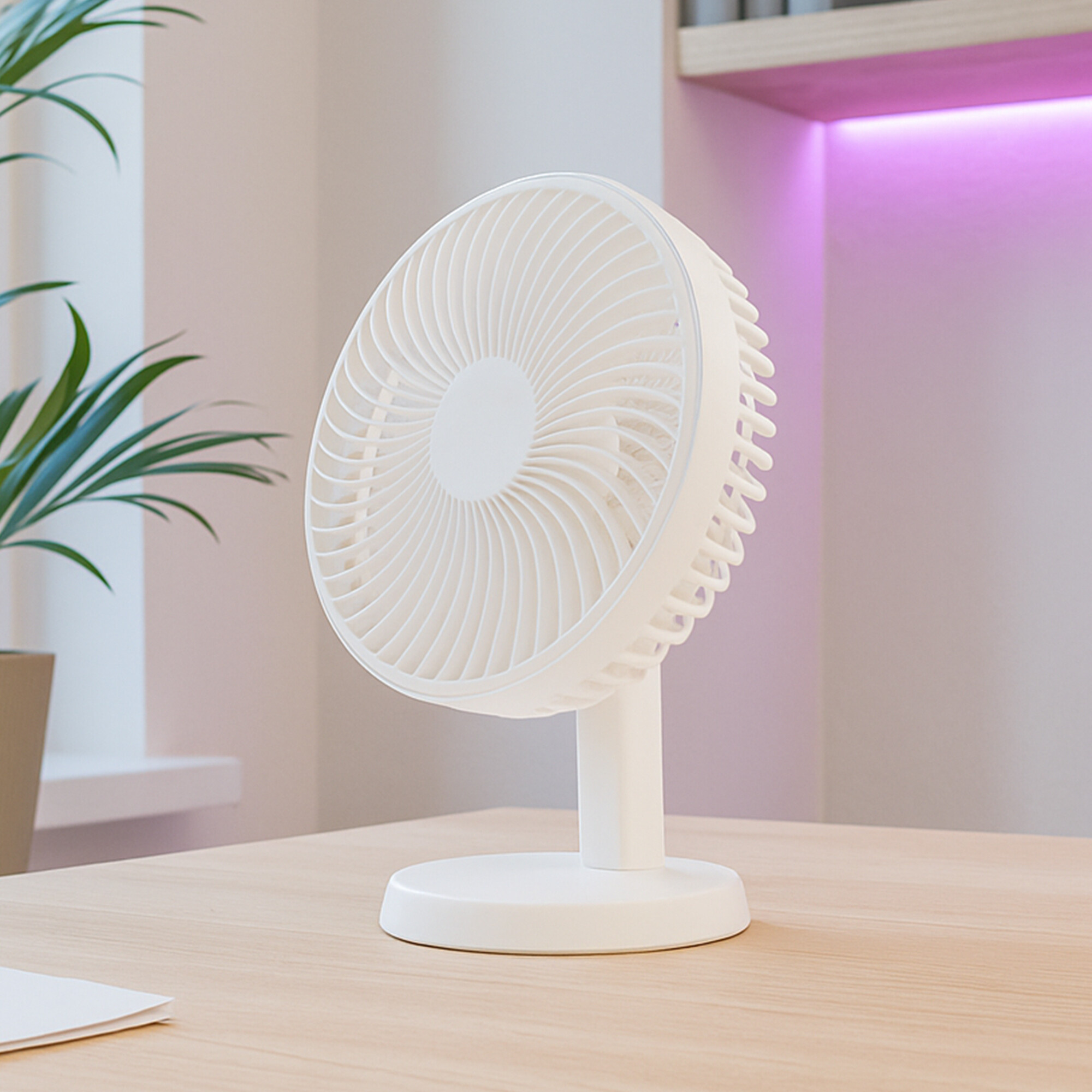 Stolný ventilátor Aga je skladný, prenosný, bezdrôtový a tichý pomocník, ktorý sa postará o príjemné osvieženie kdekoľvek a kedykoľvek. Kĺb na nožičke umožňuje nasmerovanie prúdu vzduchu.