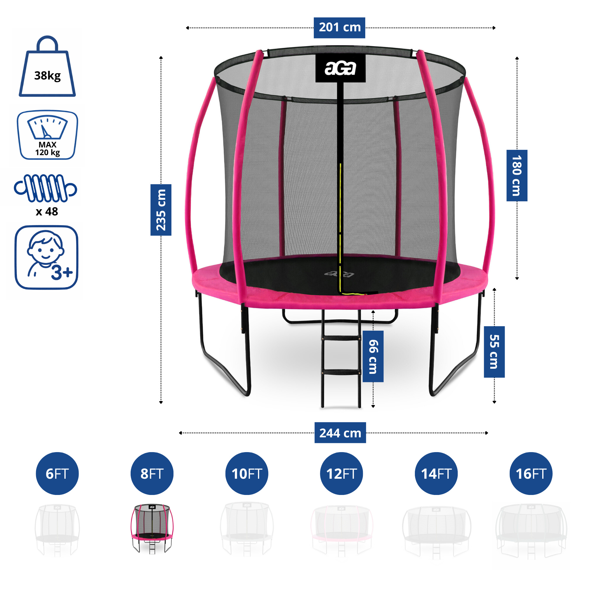 Trampolína Aga s vnútornou ochrannou sieťou bola špeciálne navrhnutá a vyrobená pre bezpečnú zábavu detí aj dospelých.